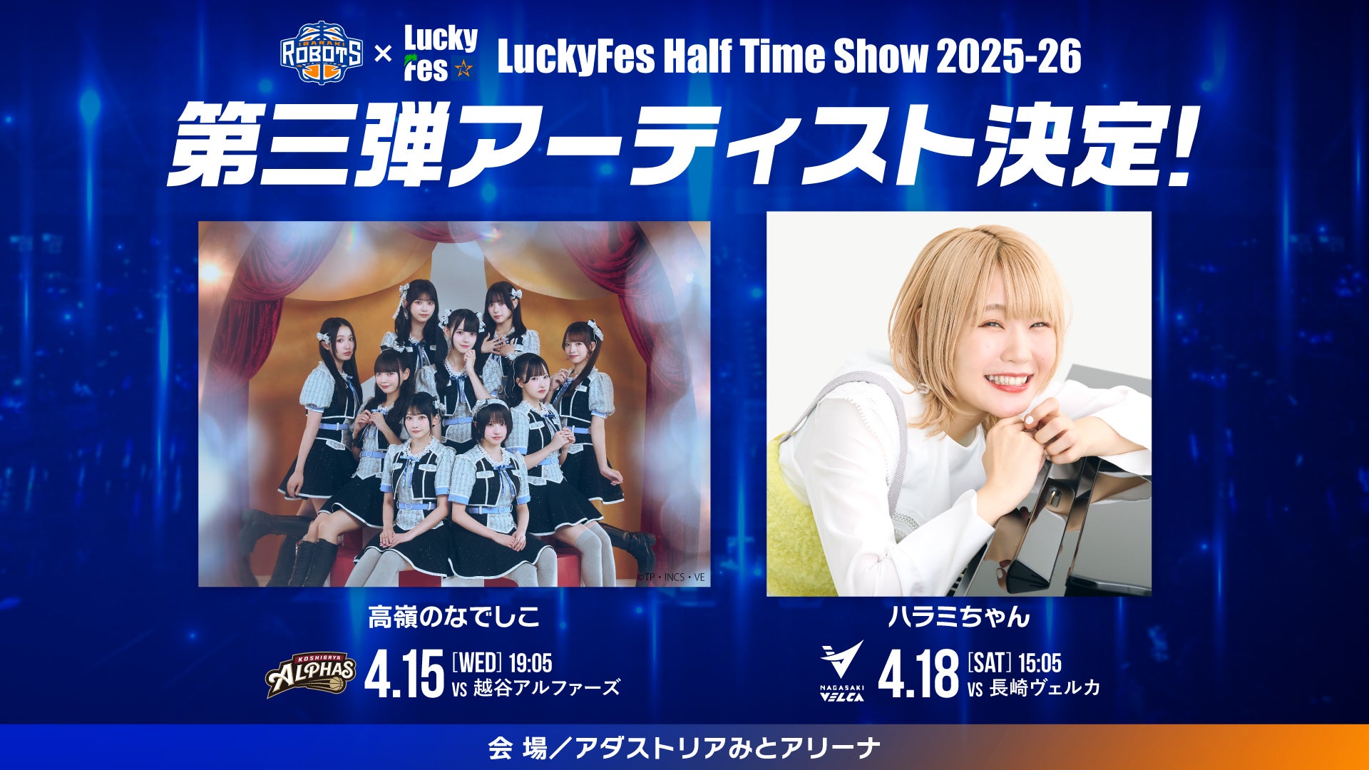「LuckyFes Half Time Show」に高嶺のなでしこ(4/15)・ハラミちゃん(4/18)出演決定!