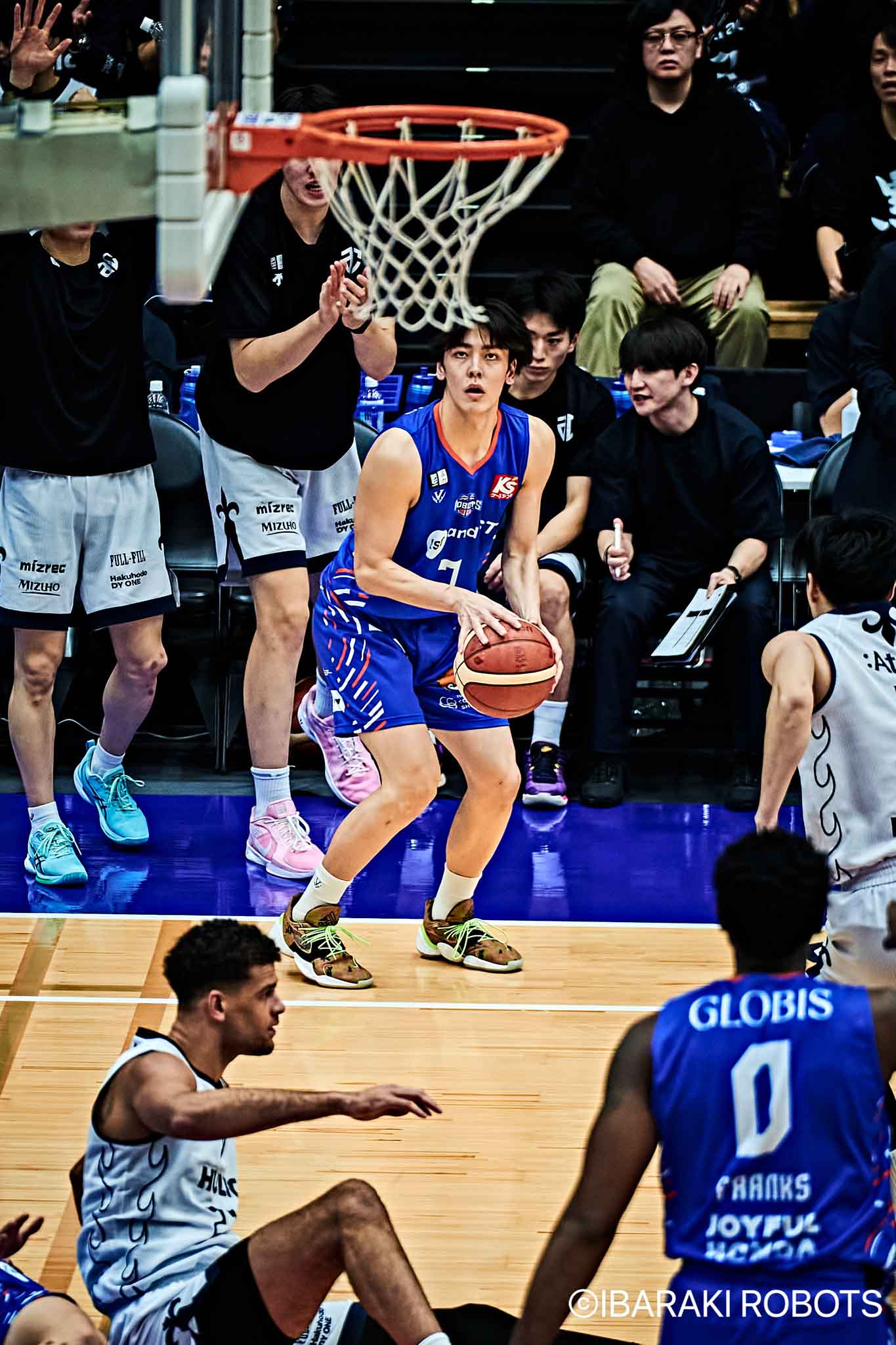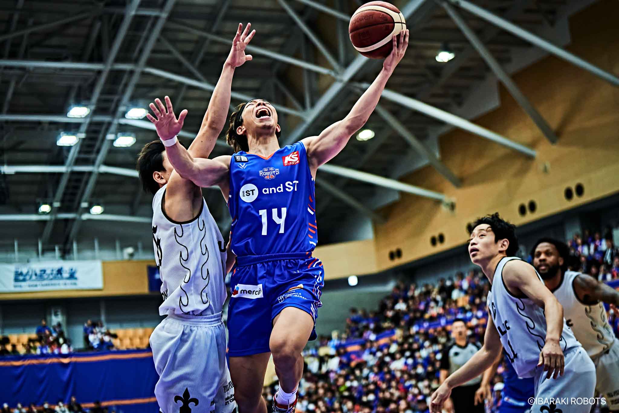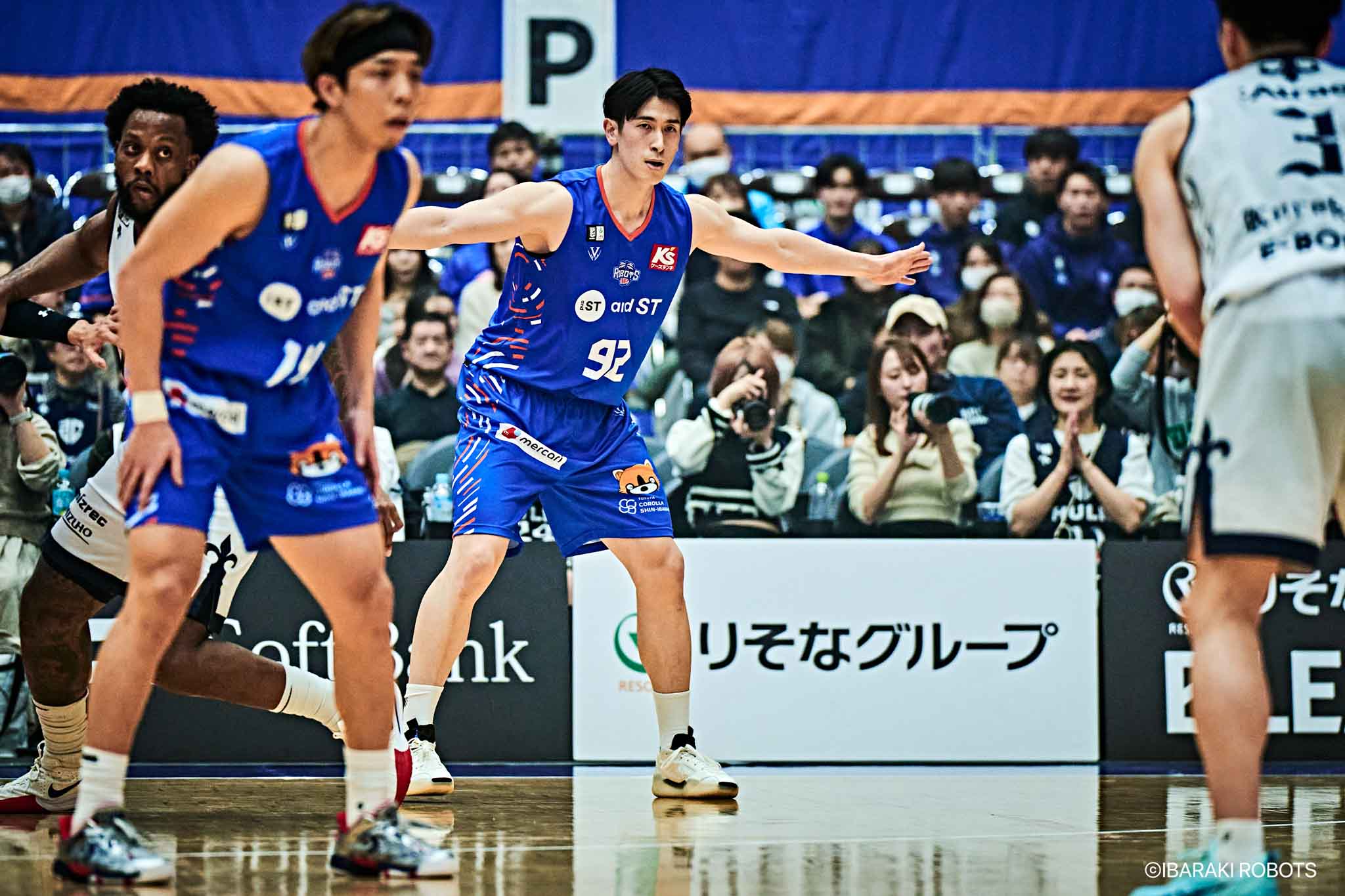 #10 陳岡が3Pシュートを決めると、続けて#21 ジェイコブセンがリバウンドからゴール下へねじ込む。さらに#0 フランクスが3Pシュートを沈め、主導権を握る。#14 久岡の3Pシュート、#9 ヤンのバスケットカウント、#29 鶴巻のドライブからのレイアップと、ベンチから出場した選手が攻撃面で存在感を見せる。終盤には#92 村越がロボッツ加入後初得点を記録し、23-18で第1Q終了。
