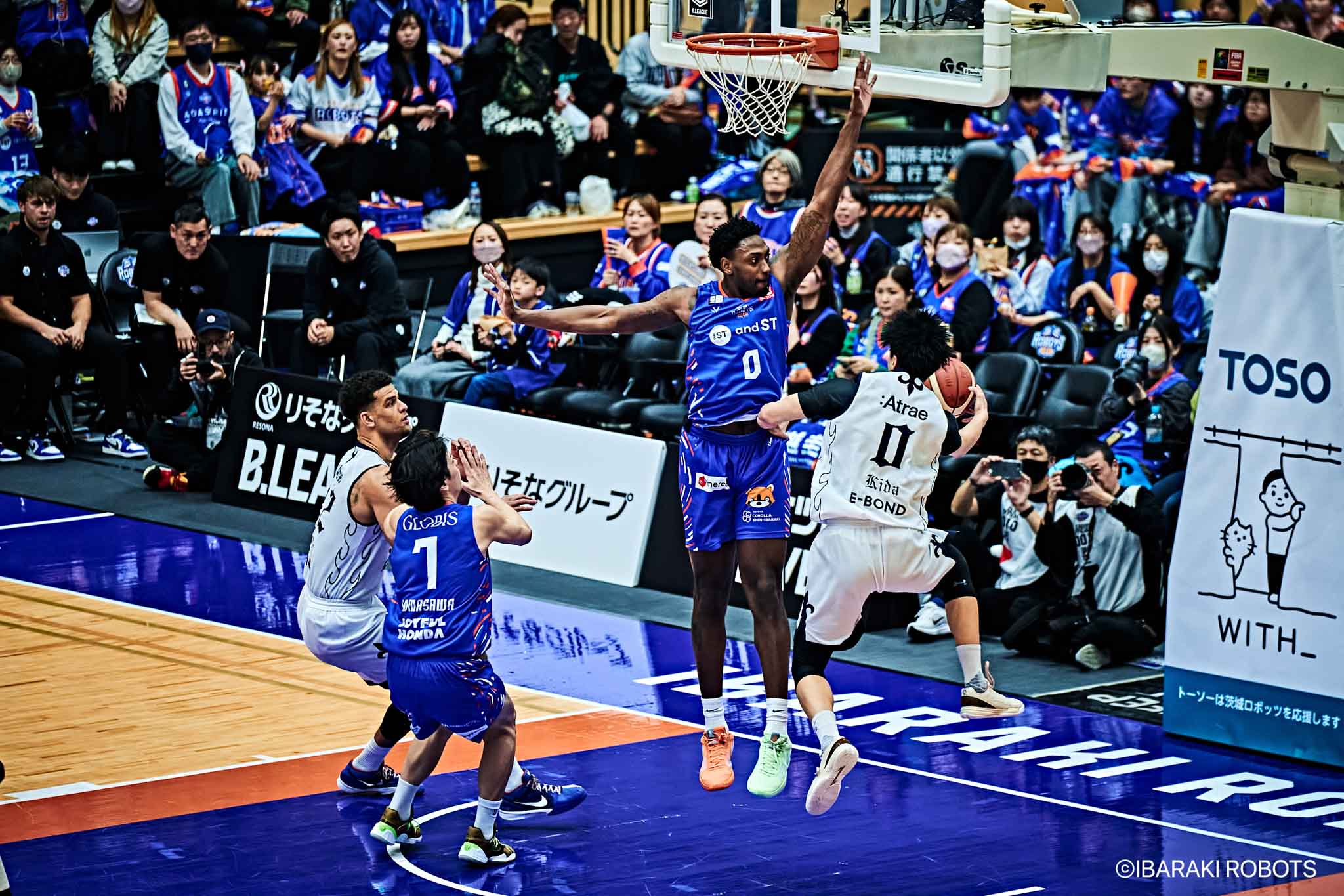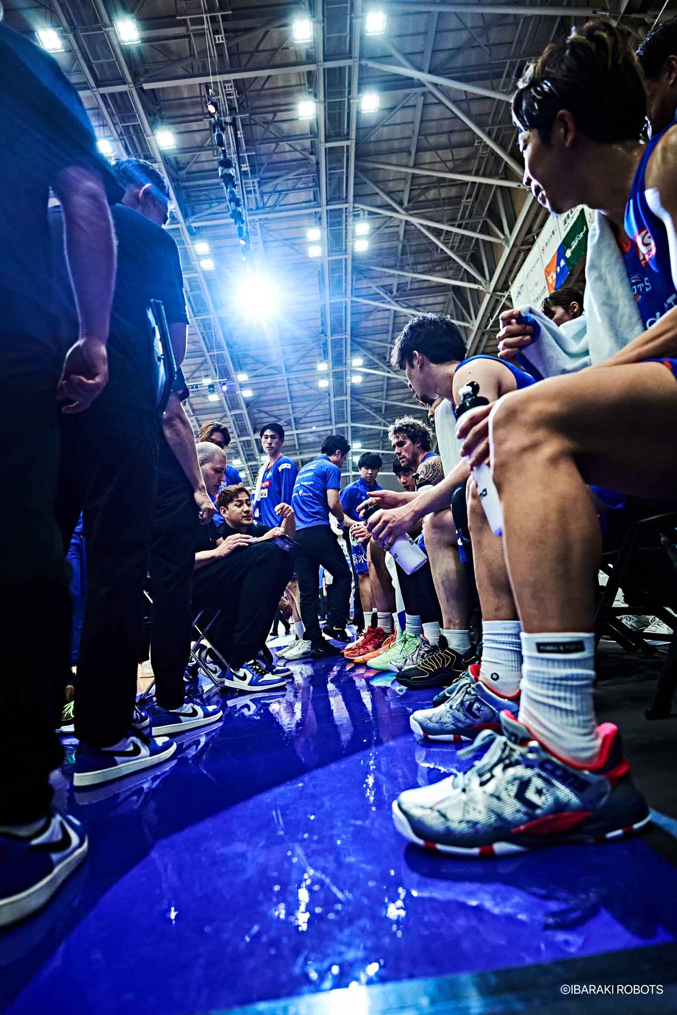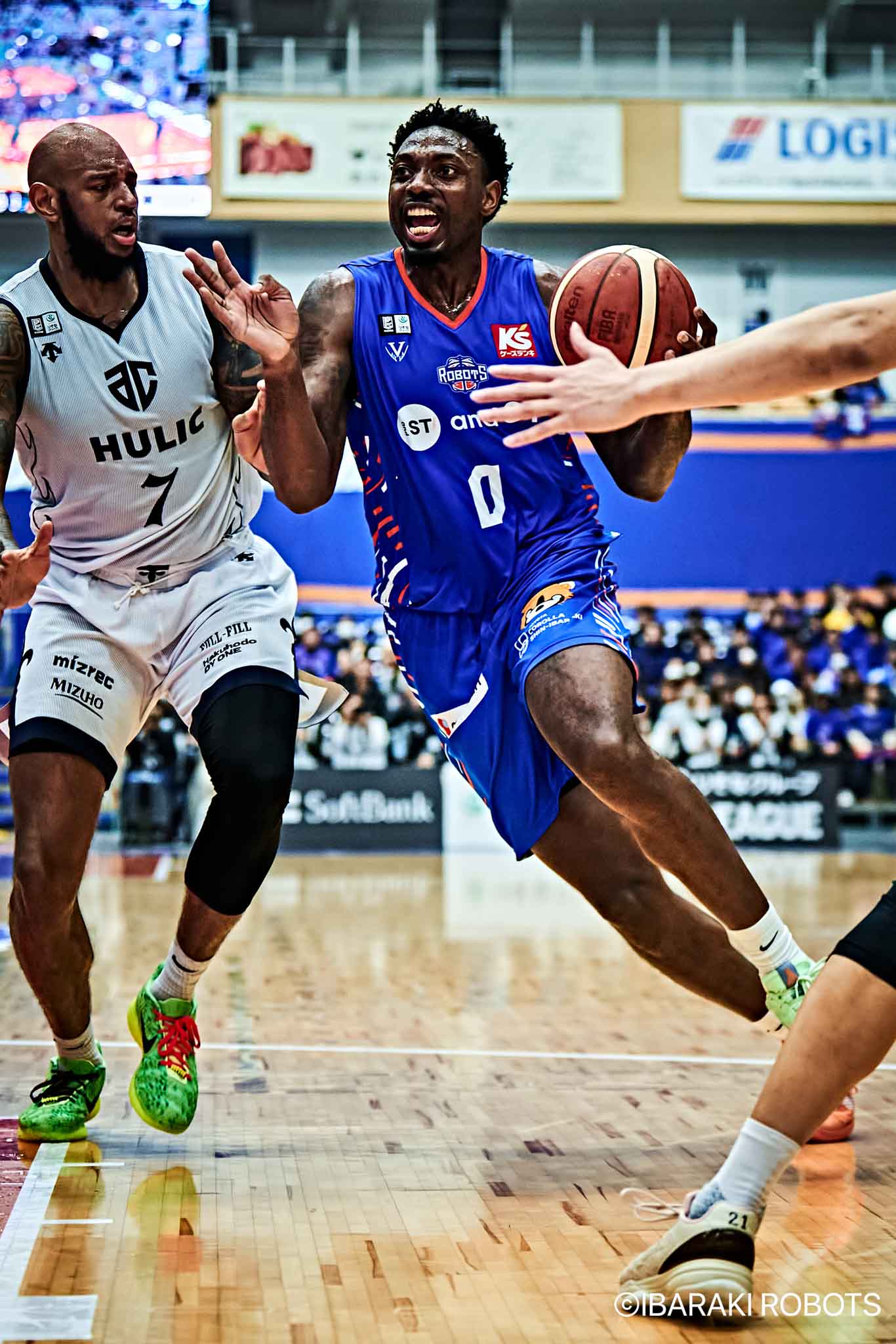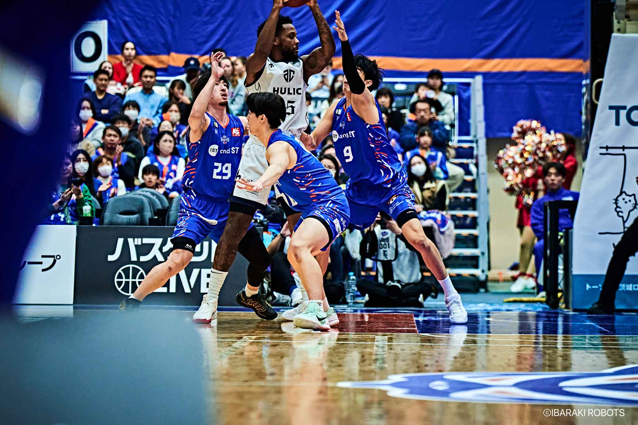 #10 陳岡が3Pシュートを決めると、続けて#21 ジェイコブセンがリバウンドからゴール下へねじ込む。さらに#0 フランクスが3Pシュートを沈め、主導権を握る。#14 久岡の3Pシュート、#9 ヤンのバスケットカウント、#29 鶴巻のドライブからのレイアップと、ベンチから出場した選手が攻撃面で存在感を見せる。終盤には#92 村越がロボッツ加入後初得点を記録し、23-18で第1Q終了。