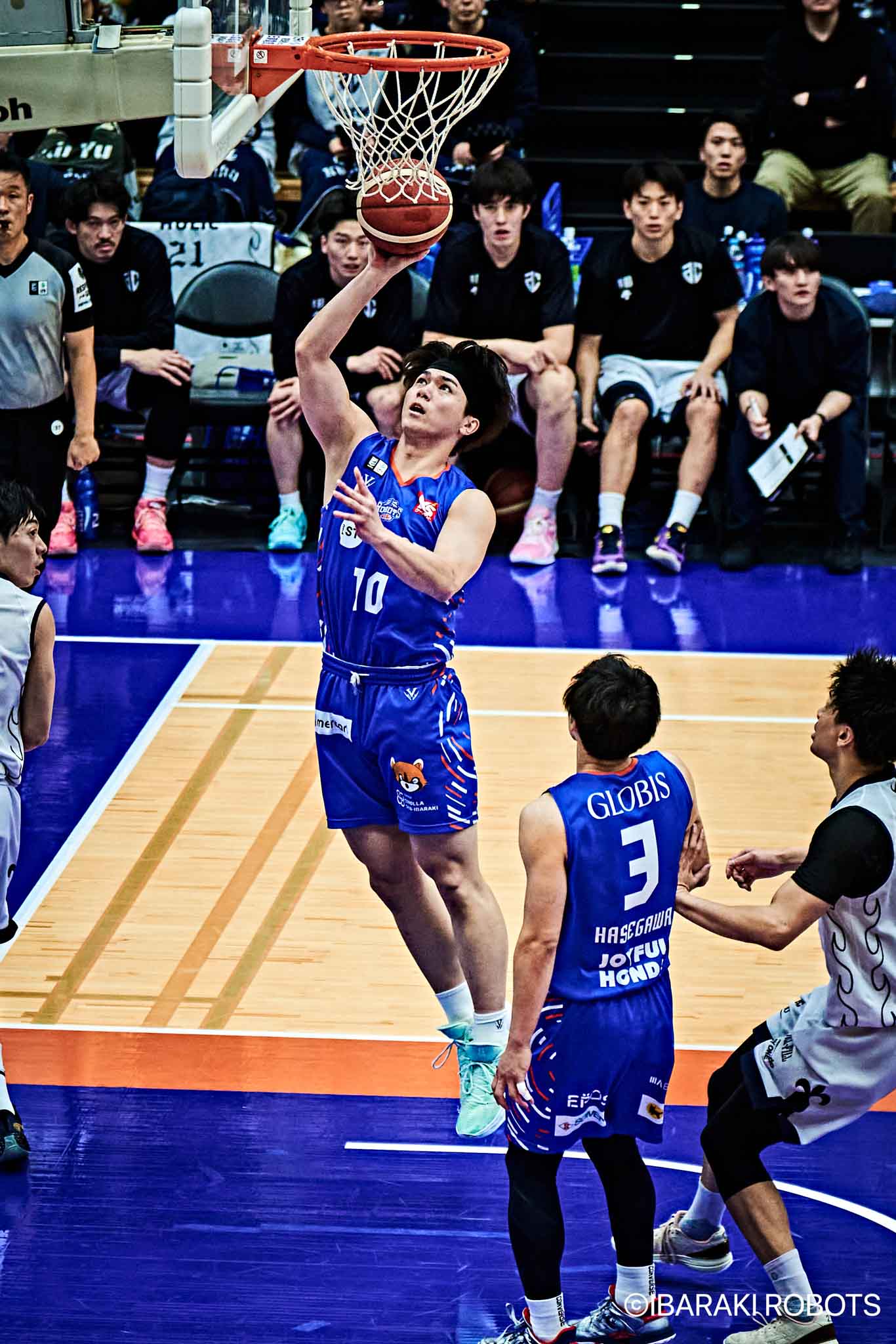開始早々に24秒バイオレーションを奪い、流れを引き寄せる。#21 ジェイコブセンがインサイドで体を張り続け、簡単にリードを作らせない。 #7 駒沢の3Pシュートで同点に追いつくと、#10 陳岡がスティールから速攻のレイアップを決めて逆転に成功。以降は一進一退の攻防が続く中、#14 久岡の絶妙なアシストから#21 ジェイコブセンがダンクを叩き込み、さらに#14 久岡自身も3Pシュートを決めてリードを4点に拡大する。 最後は全員で集中力を切らさずリードを守り切り、81-71で試合終了。