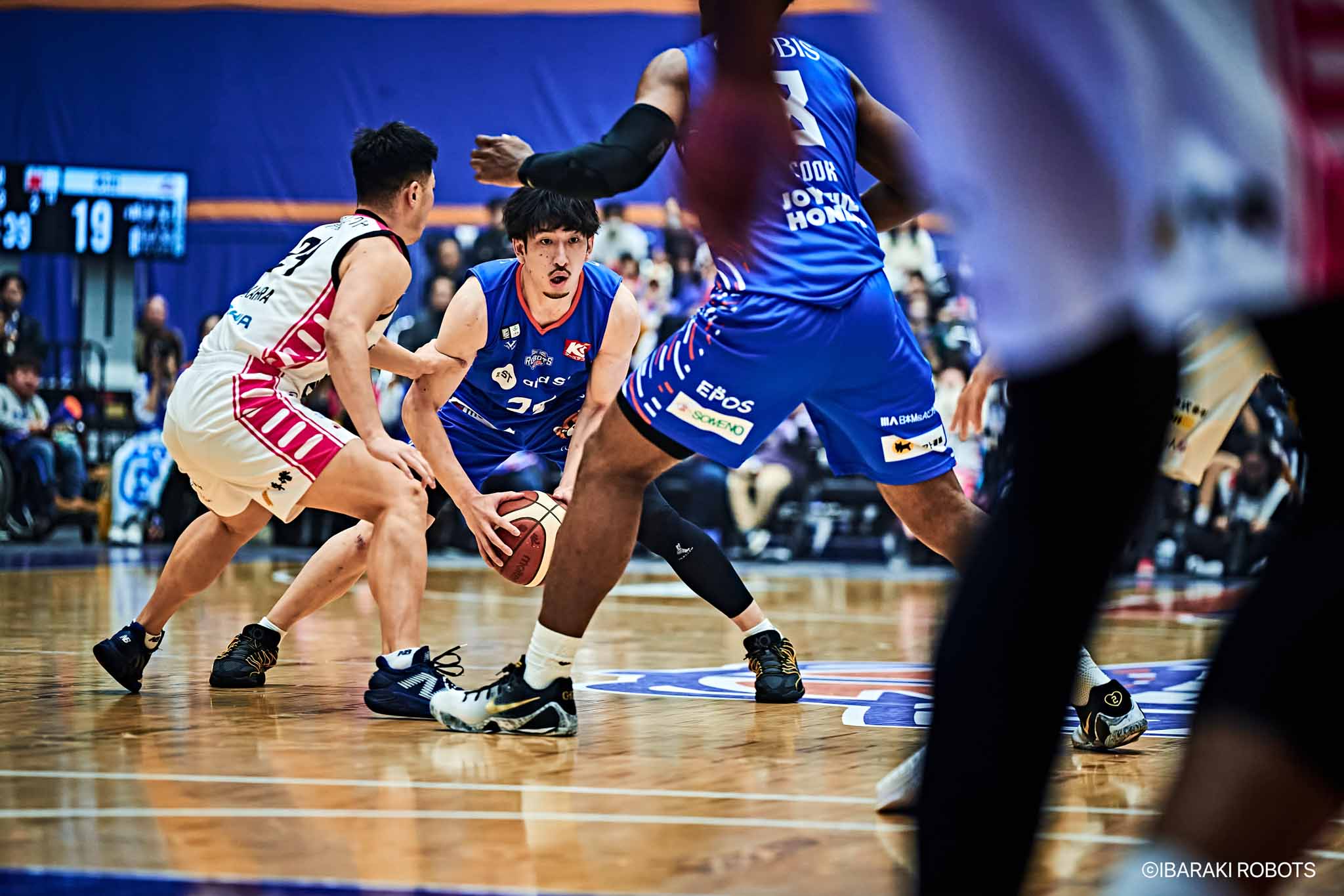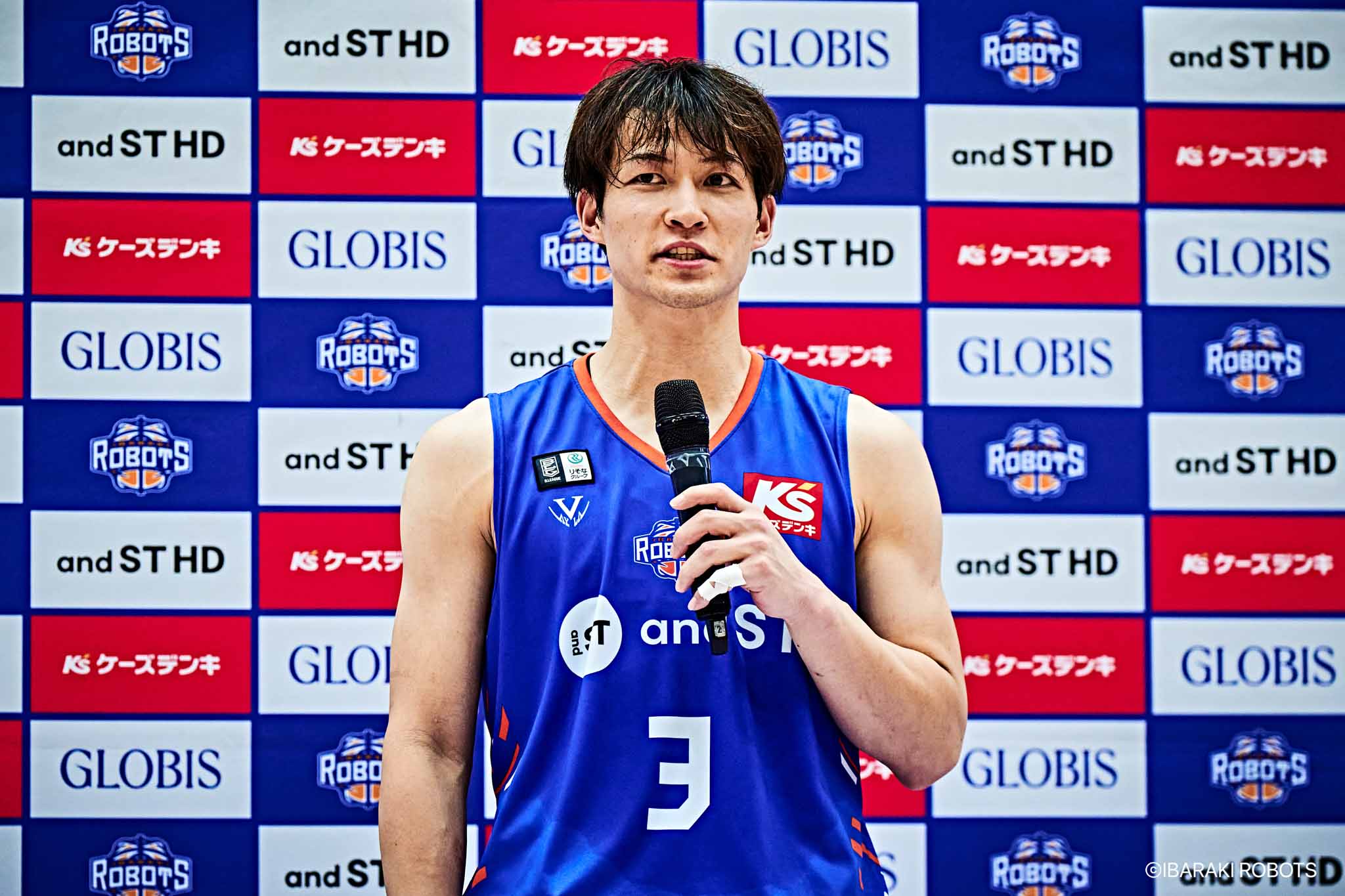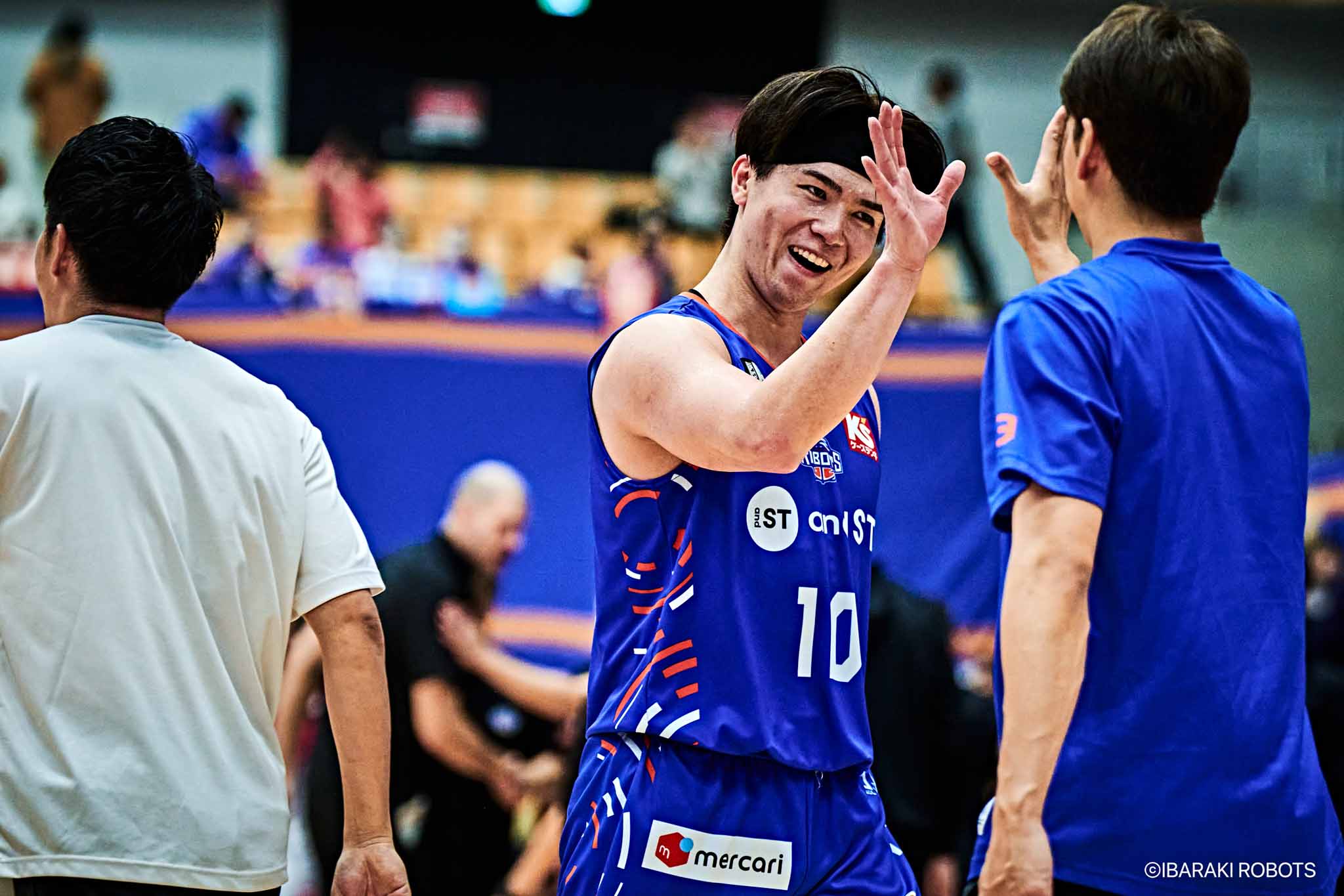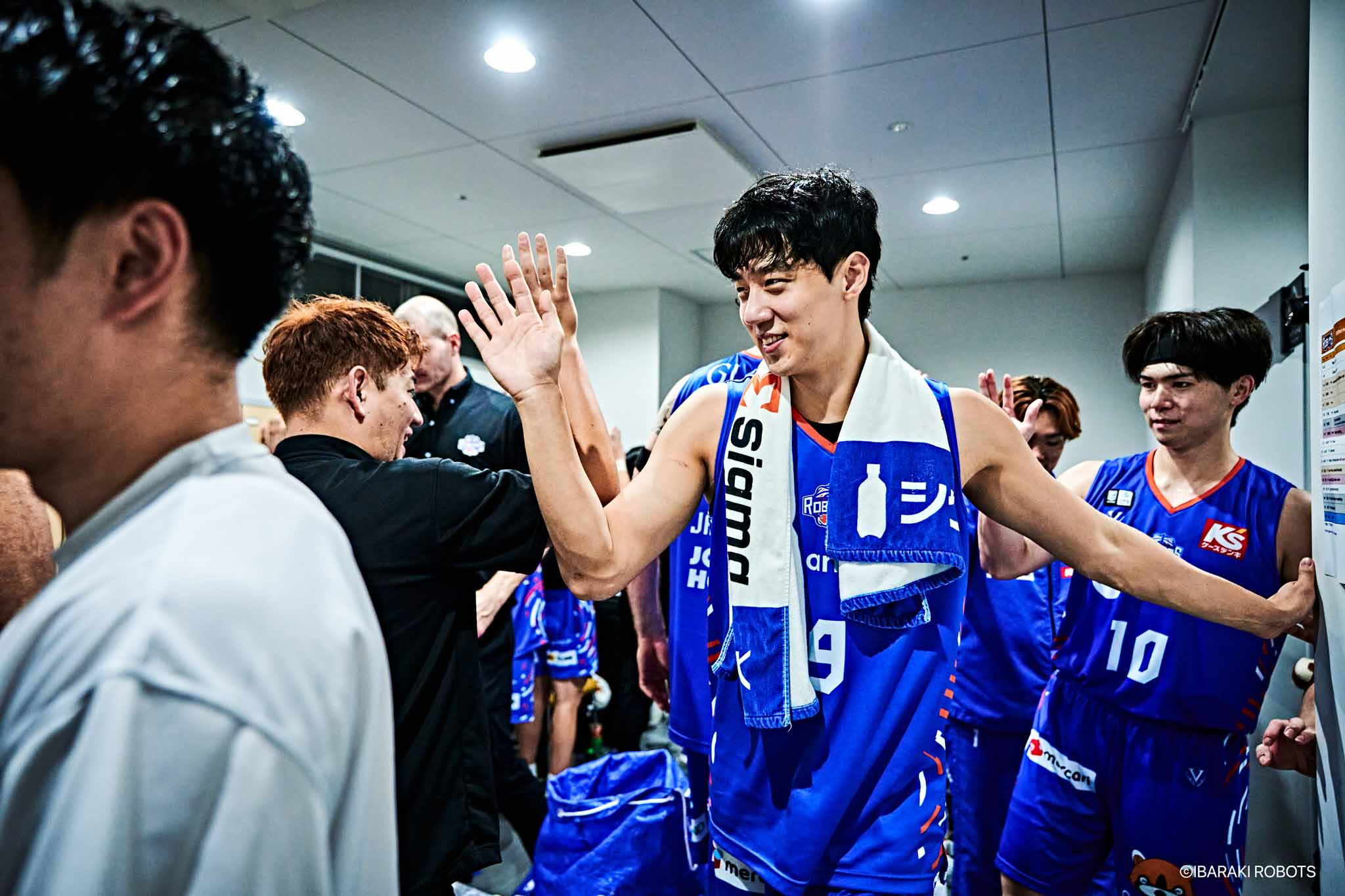 秋田さんがフィジカルに来るとわかっていながら、2連勝したいという気持ちで臨んだ試合でした。前半で2桁リードをされてしまいましたが、#21 ジェイコブセン選手が「ずっと我慢し続けよう。自分たちのバスケットをし続けよう。」と話をしてくれました。バックアップで出てきた#14 久岡選手や#9 ヤン選手が繋いでくれたので、最後は僕自身も気持ち良くプレーでき、ディフェンスで我慢しながら、オフェンスでも積極的にシュートを狙っていきました。その結果、12点差で勝利できたことはロボッツとして1番良い戦い方だったのかなと思います。
