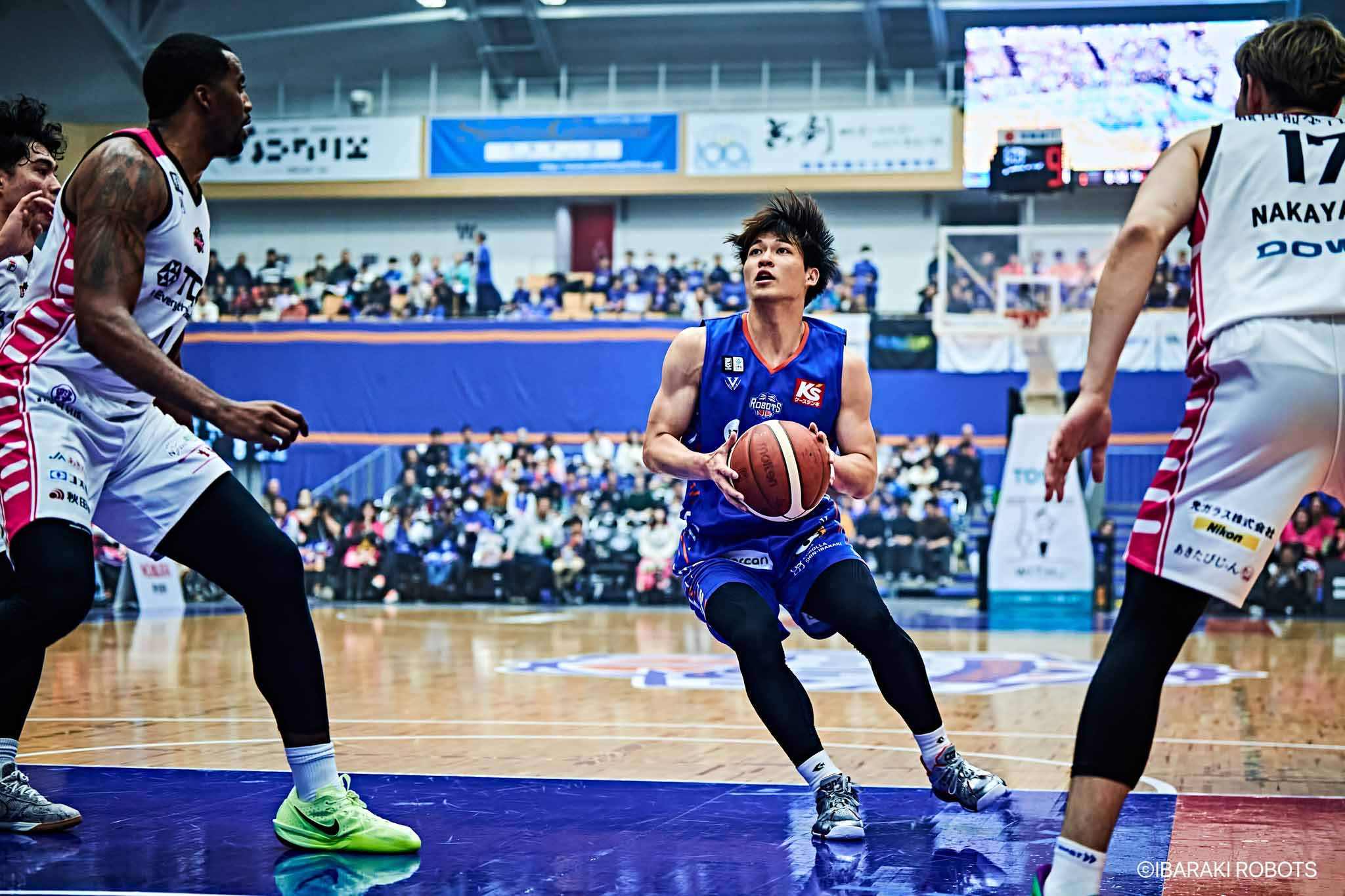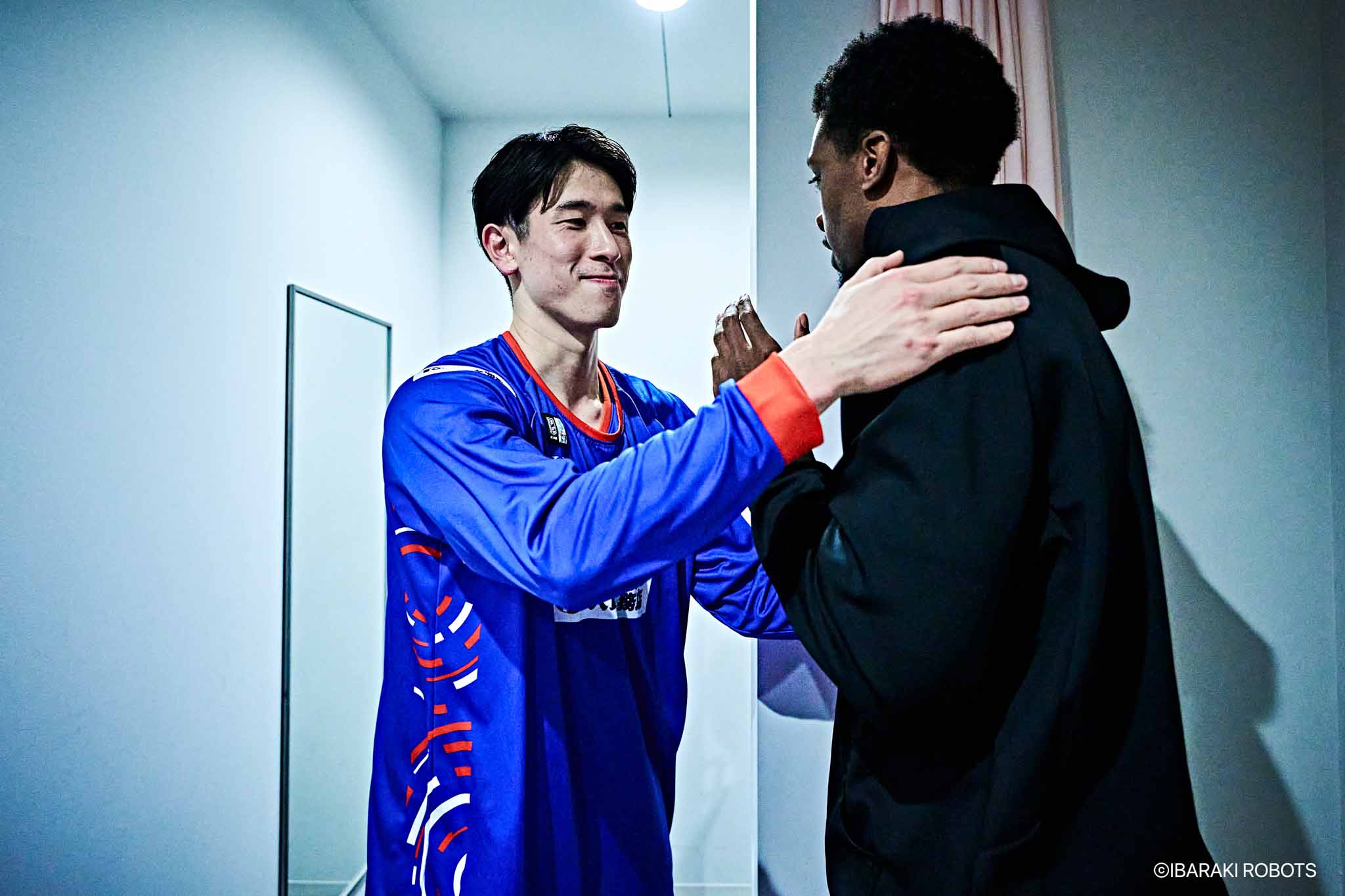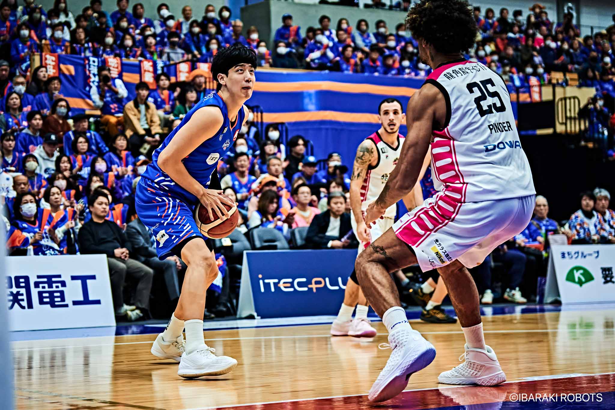 秋田さんがフィジカルに来るとわかっていながら、2連勝したいという気持ちで臨んだ試合でした。前半で2桁リードをされてしまいましたが、#21 ジェイコブセン選手が「ずっと我慢し続けよう。自分たちのバスケットをし続けよう。」と話をしてくれました。バックアップで出てきた#14 久岡選手や#9 ヤン選手が繋いでくれたので、最後は僕自身も気持ち良くプレーでき、ディフェンスで我慢しながら、オフェンスでも積極的にシュートを狙っていきました。その結果、12点差で勝利できたことはロボッツとして1番良い戦い方だったのかなと思います。