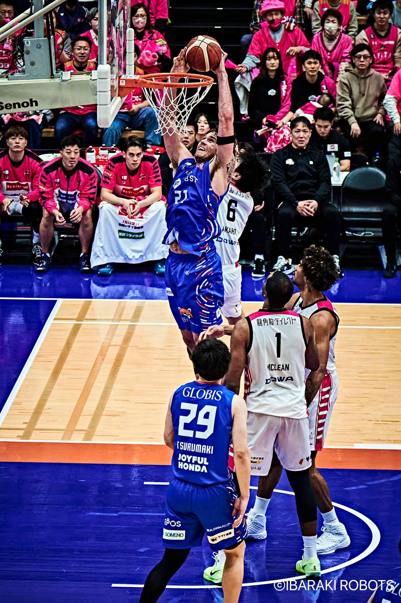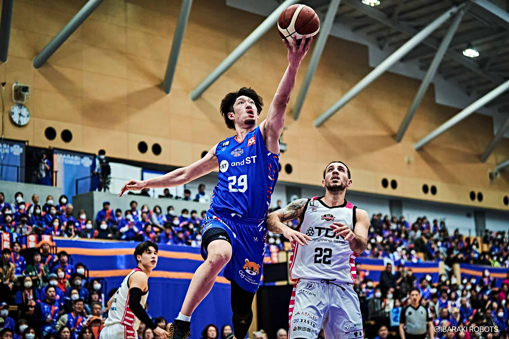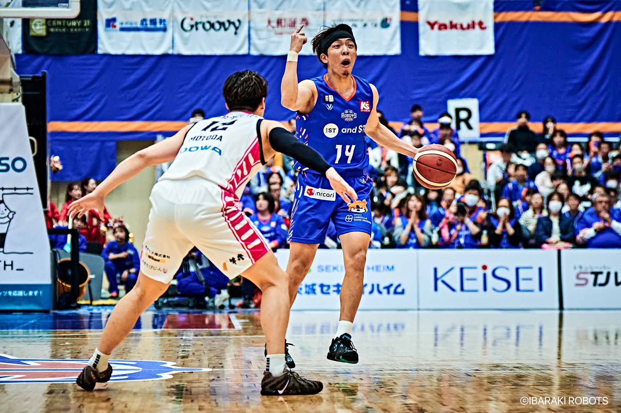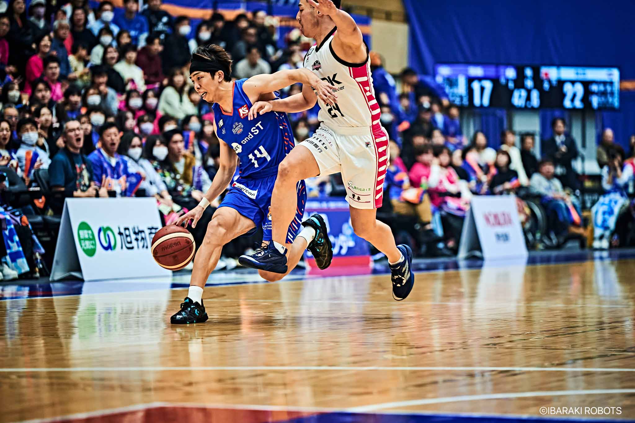 秋田さんがフィジカルに来るとわかっていながら、2連勝したいという気持ちで臨んだ試合でした。前半で2桁リードをされてしまいましたが、#21 ジェイコブセン選手が「ずっと我慢し続けよう。自分たちのバスケットをし続けよう。」と話をしてくれました。バックアップで出てきた#14 久岡選手や#9 ヤン選手が繋いでくれたので、最後は僕自身も気持ち良くプレーでき、ディフェンスで我慢しながら、オフェンスでも積極的にシュートを狙っていきました。その結果、12点差で勝利できたことはロボッツとして1番良い戦い方だったのかなと思います。