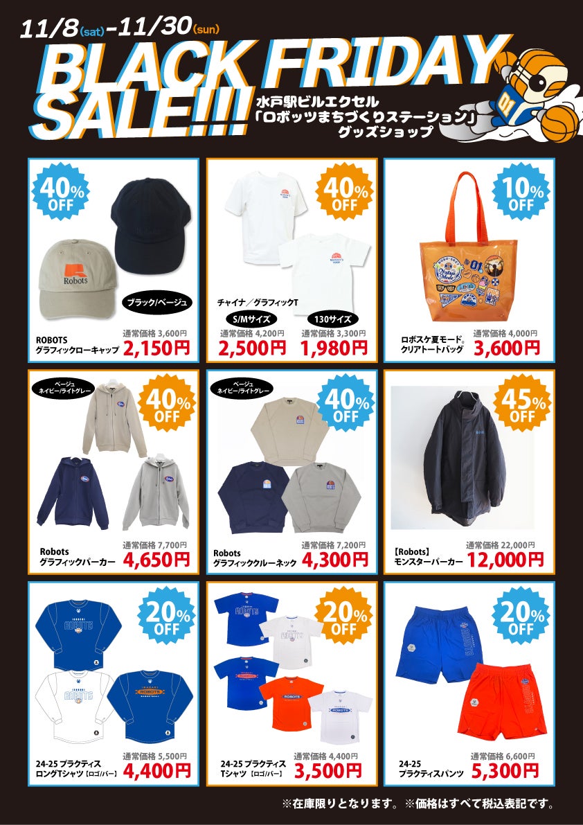 いつも茨城ロボッツに熱い応援をいただきありがとうございます!水戸エクセル「ロボッツまちづくりステーション」内グッズショップの情報は、こちらのページでお知らせしていきますので、お見逃しなく!
