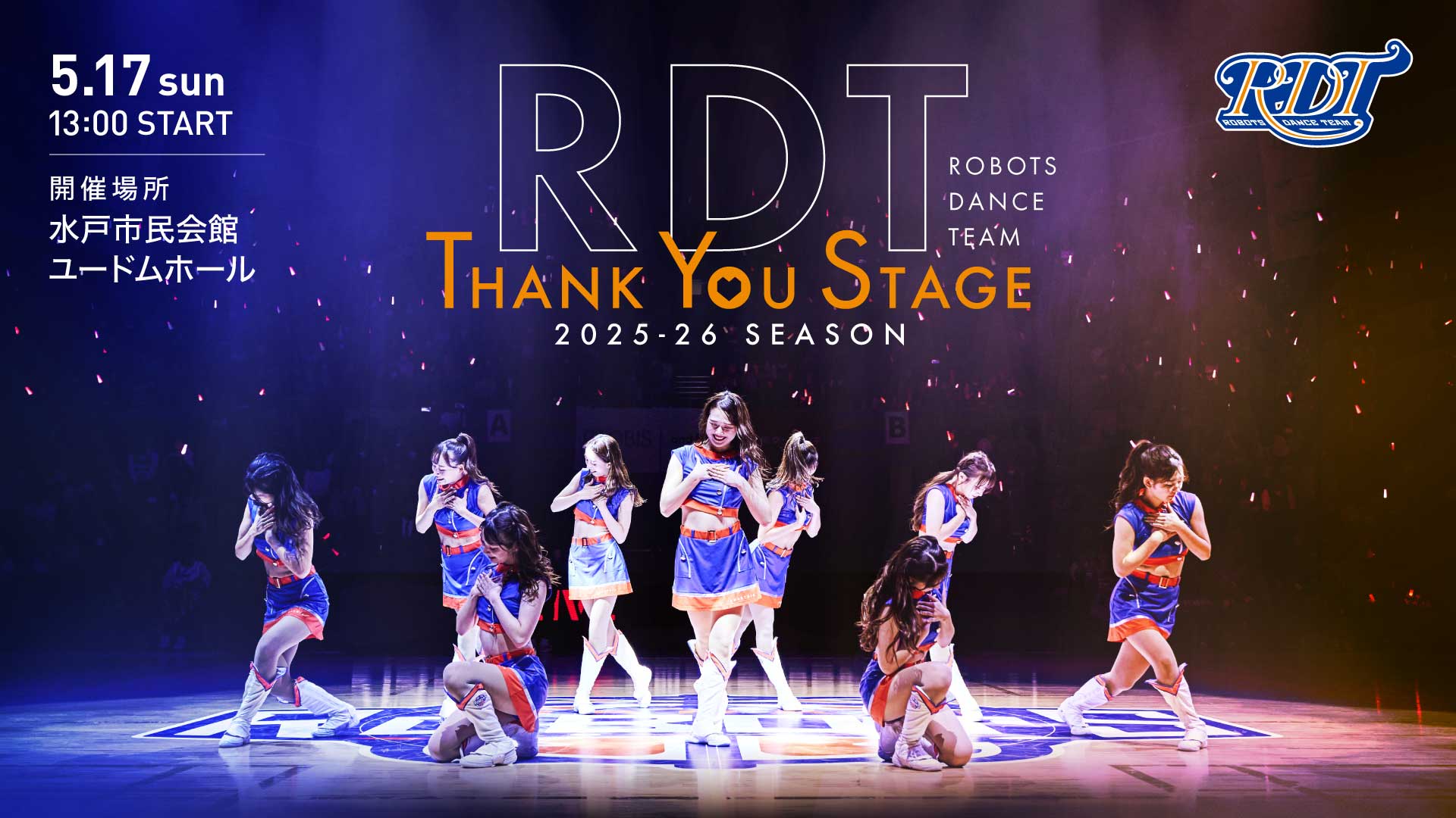 この度、茨城ロボッツでは5月17日(日)に今シーズンのRDTが全員集まる最後のイベント「RDT THANK YOU STAGE」を実施いたします。