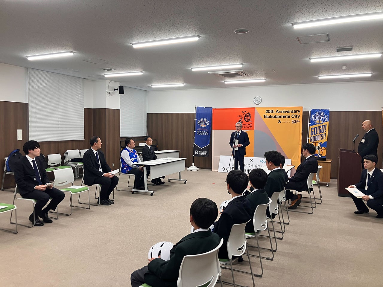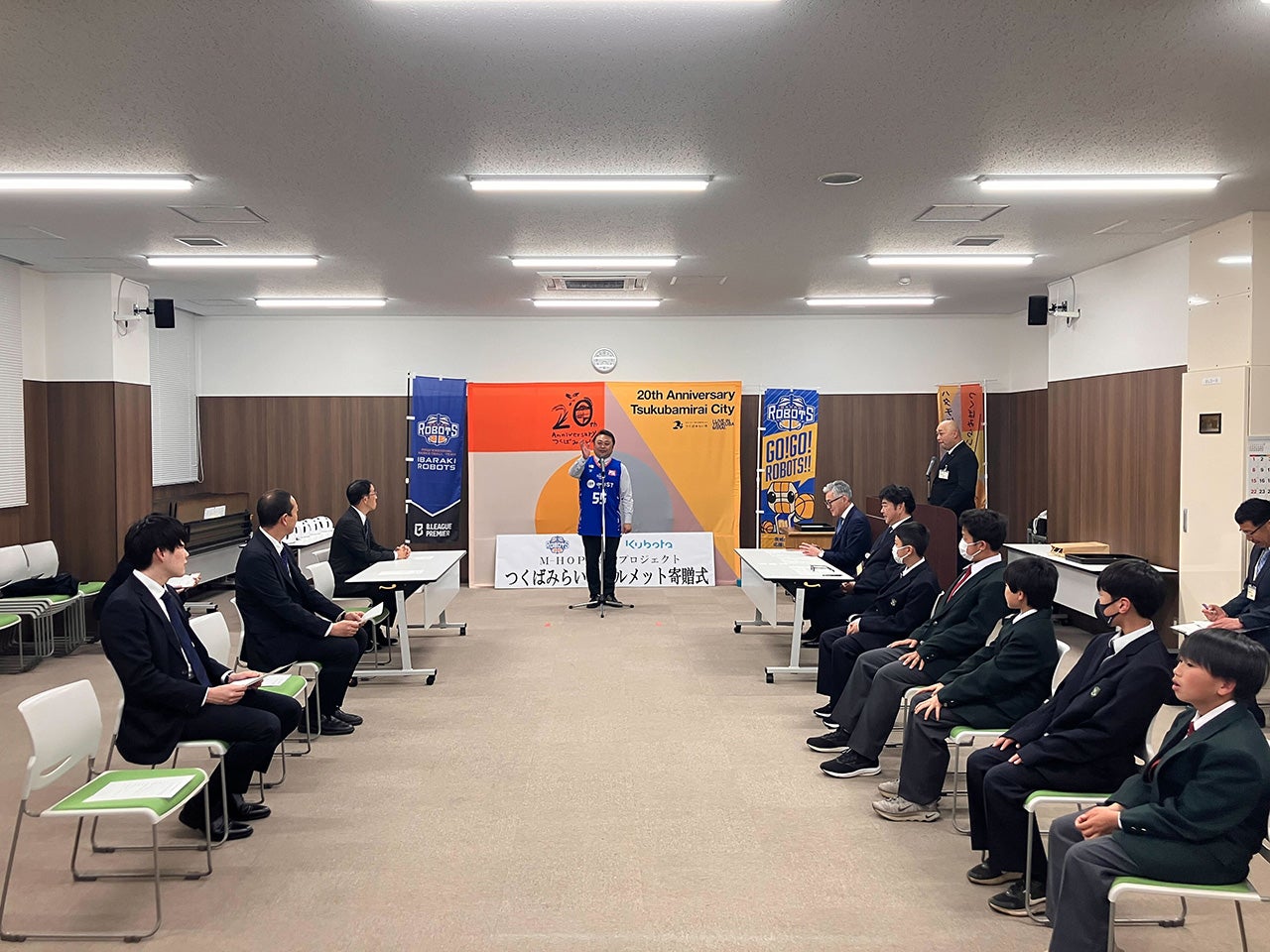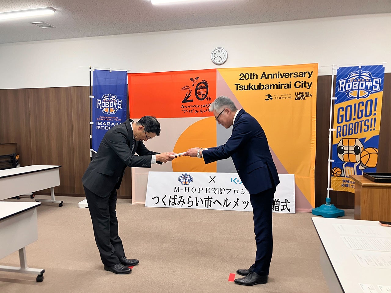 このたび、茨城ロボッツが取り組む地域貢献活動「M-HOPE」の理念に賛同し、つくばみらい市内の全中学校に入学する2026年度新入生の皆さんへヘルメットを寄贈しました。