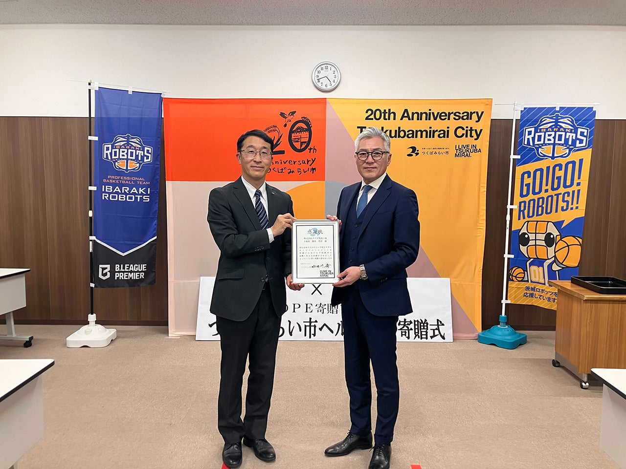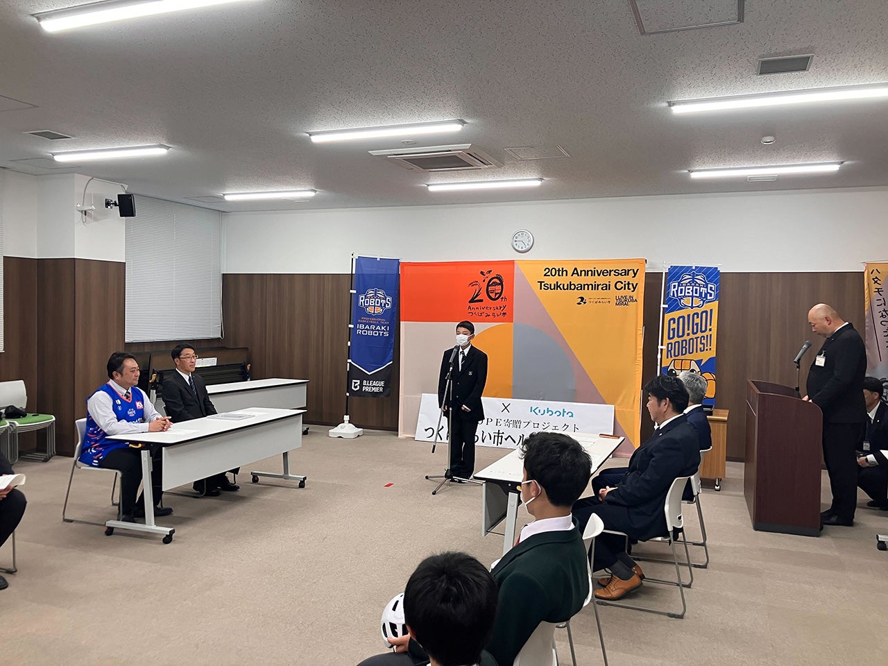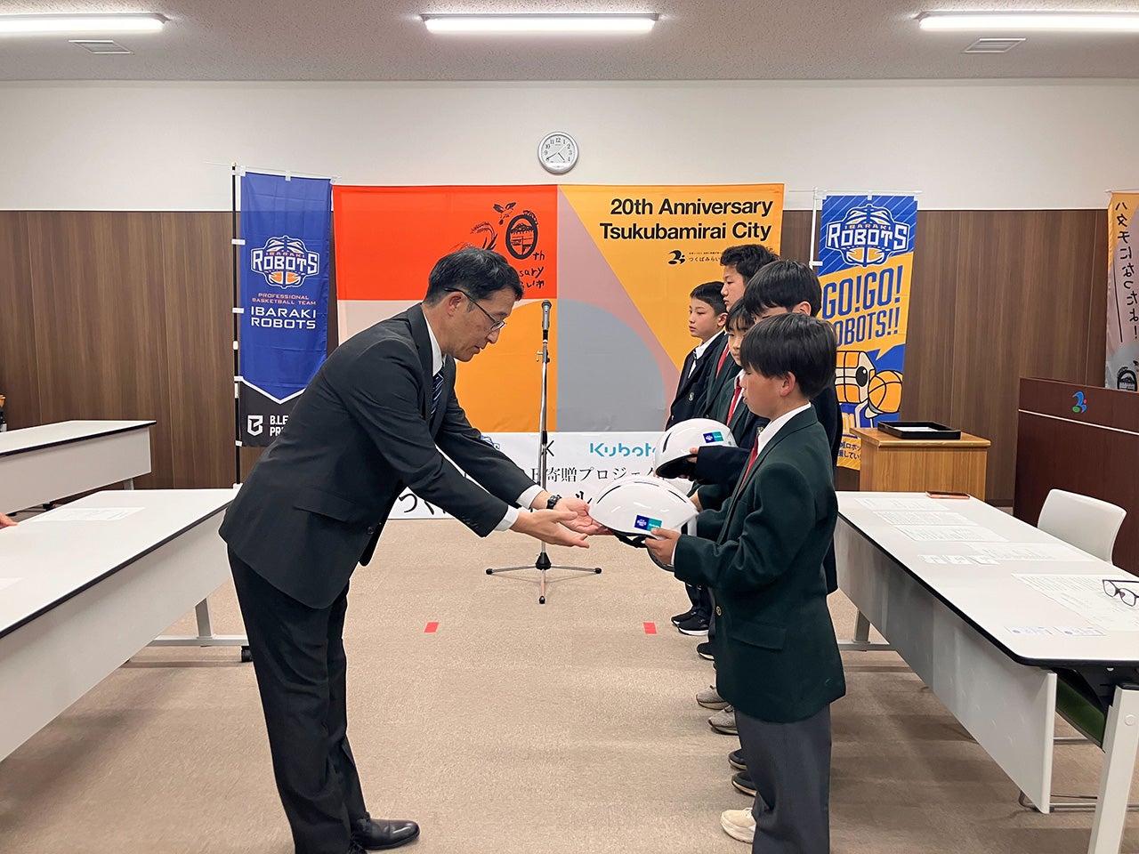 このたびはクボタ様のご支援のもと、つくばみらい市と連携し、バスケットゴールやボールに加え、ヘルメットを寄贈しました。スポーツには攻めと守りの両方が重要です。今回のヘルメット寄贈を通じて、子どもたちの安全を守ることの大切さを改めて感じています。648個のヘルメットが新中学1年生の皆さんに届けられます。子どもたちがこの地域で育ってよかったと思えるよう、私たちも地域とともに歩み、未来を支えていきます。