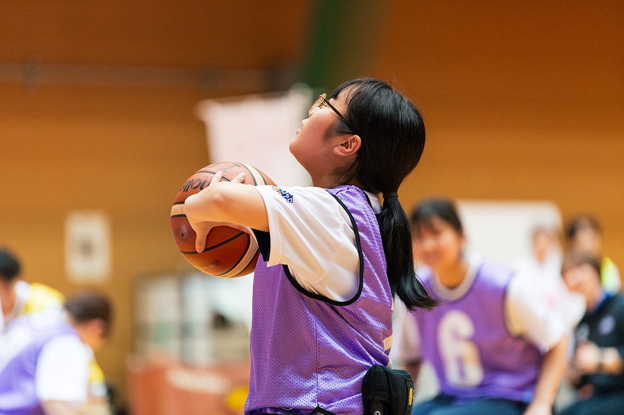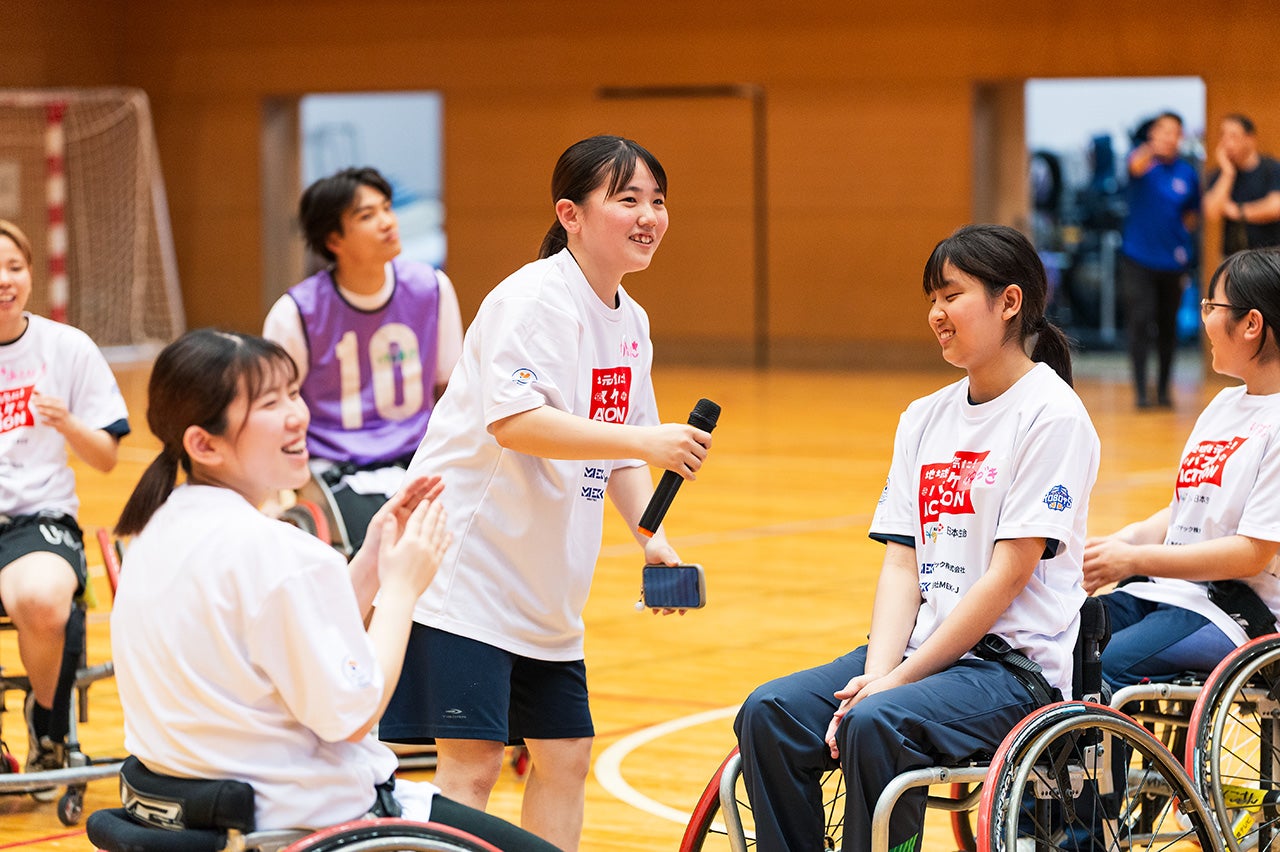 プログラムでは、競技用車いすの操作レクチャーから始まり、鬼ごっこ形式のアイスブレイク、シュート練習やミニゲームを実施。最初は「全くできないと思っていた」という参加者も、大学生たちの丁寧な指導により、最後には白熱した試合を繰り広げるまで上達しました。車いす同士がぶつかり合う迫力や、シュートが決まった瞬間の喜びを分かち合う中で、会場は大きな熱気に包まれました。