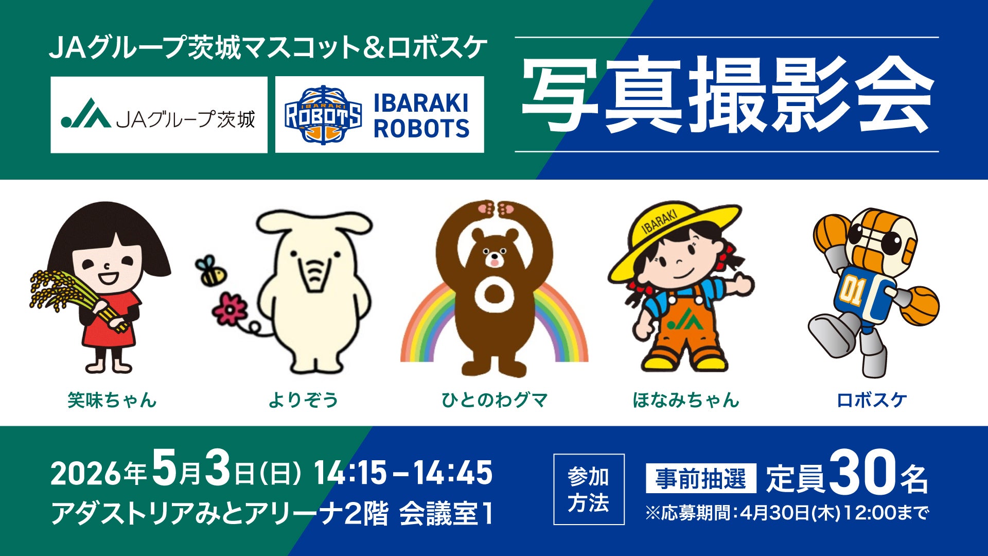 5/3(日) 大阪戦 JAグループ茨城マスコットキャラクター&ロボスケ写真撮影会開催のお知らせ