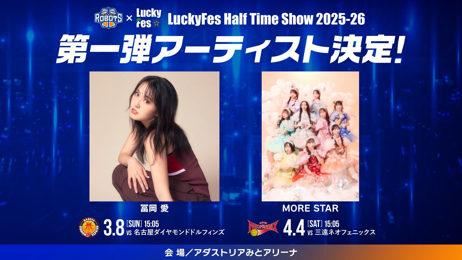 「LuckyFes Half Time Show」に冨岡愛(3/8)・MORE STAR(4/4)出演決定!