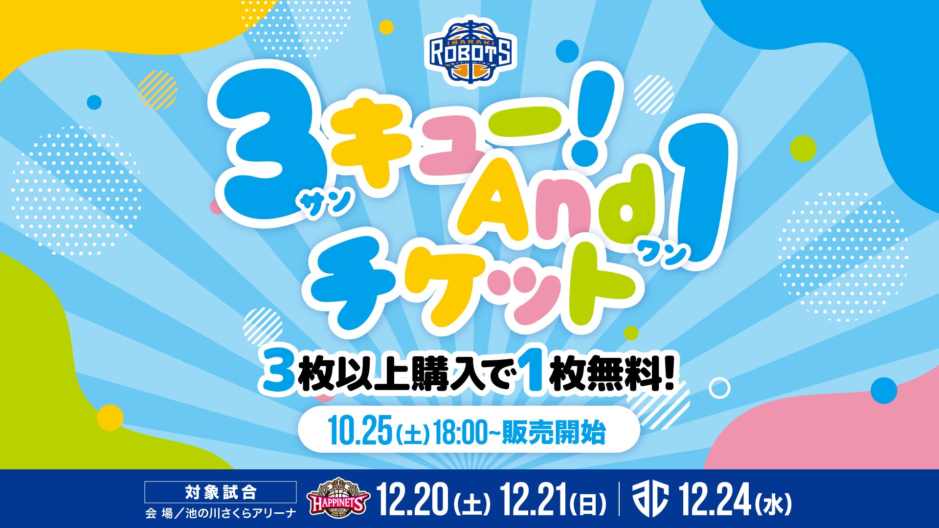 対象試合の観戦チケットを3枚以上ご購入で、1枚無料。