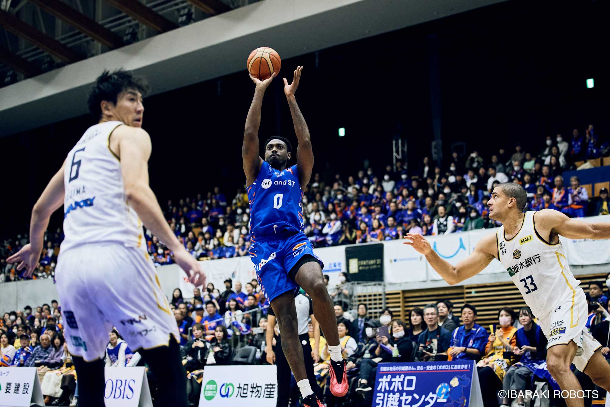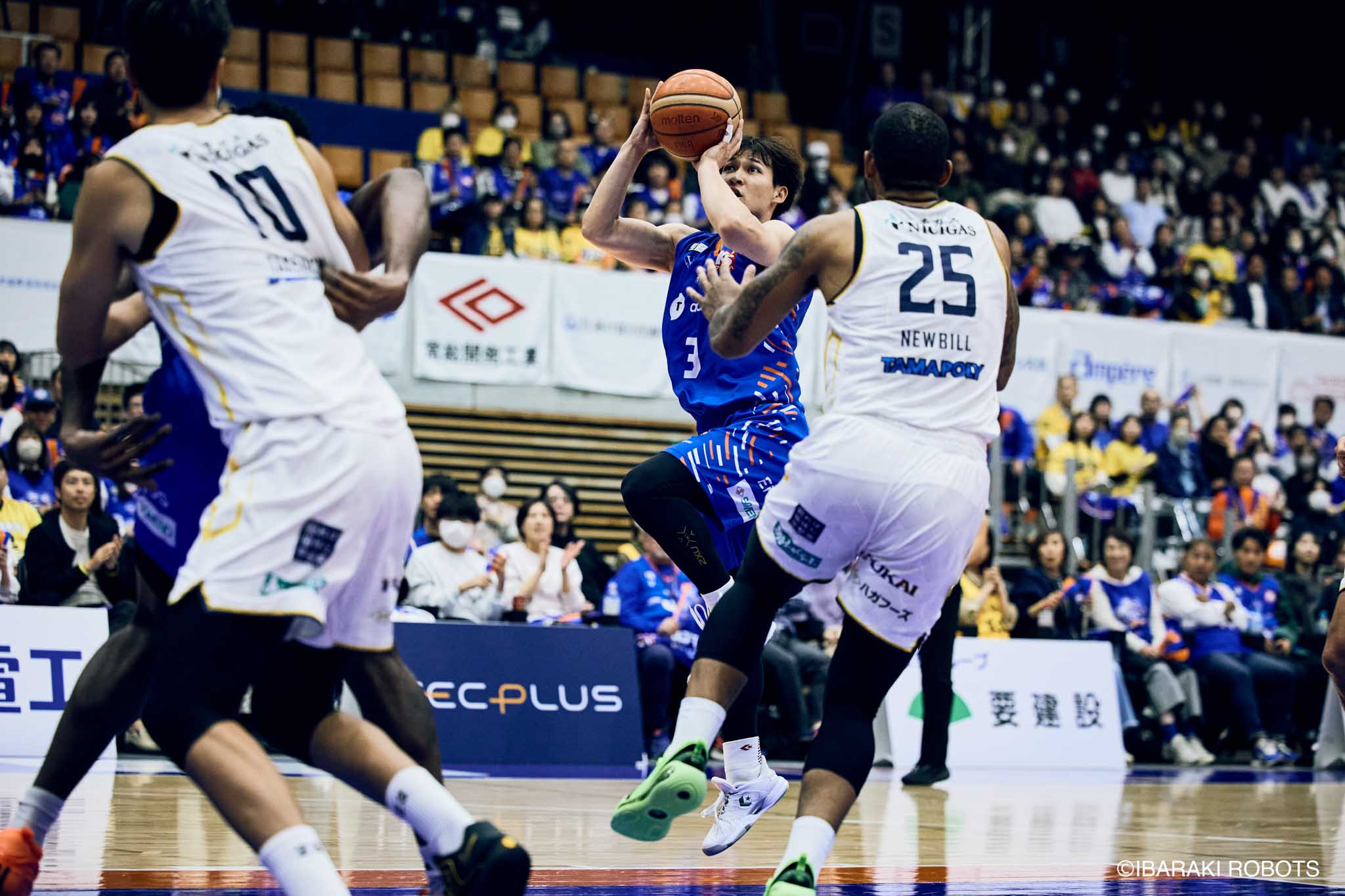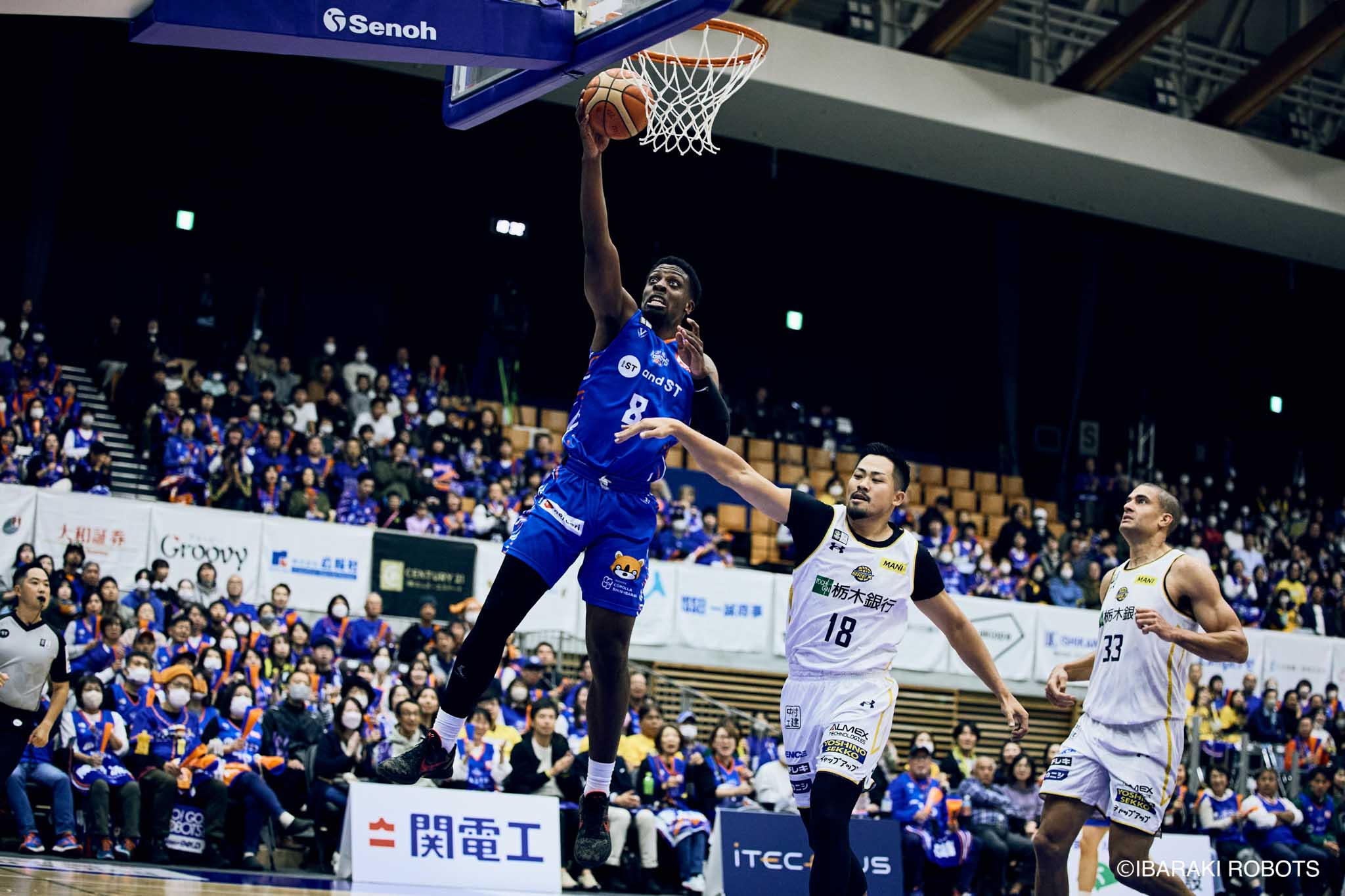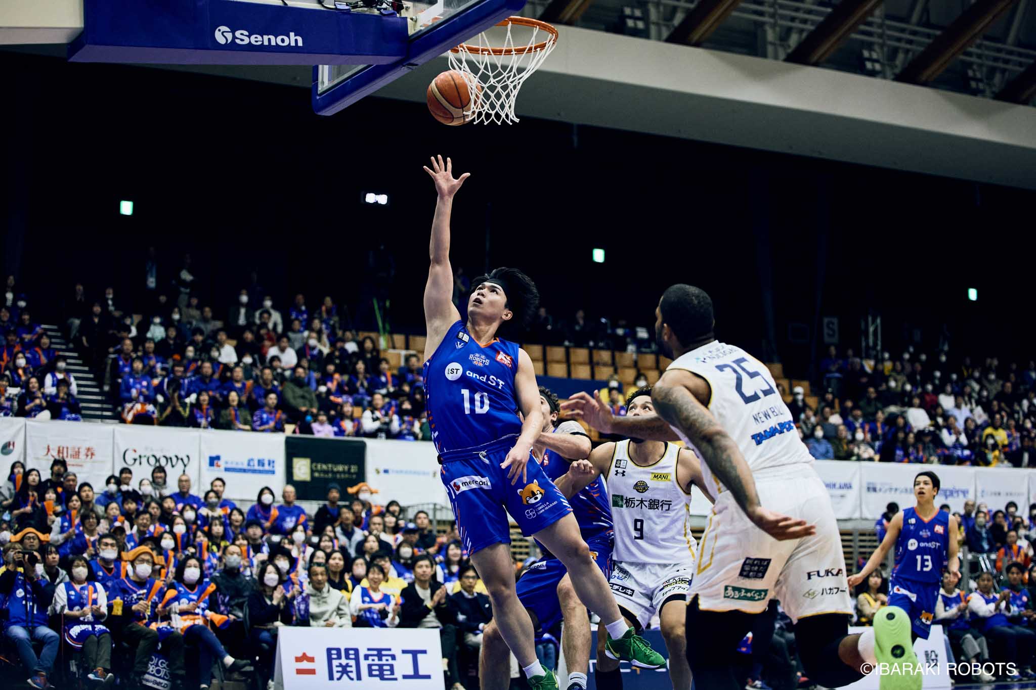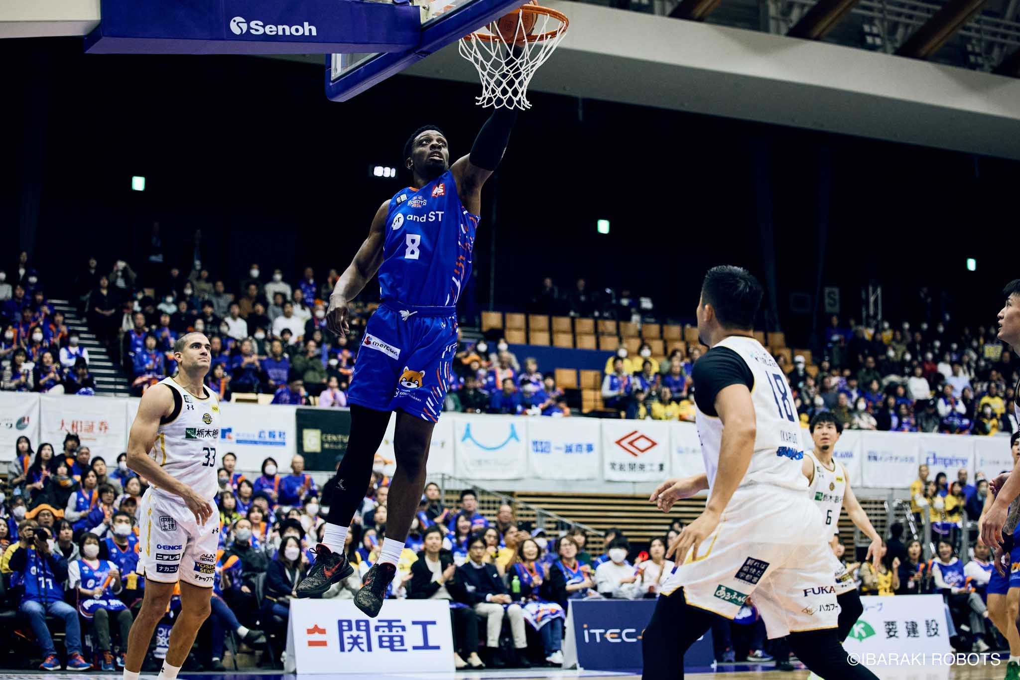 #8 クックがダンク、ファストブレイクで得点を重ねる。#3 長谷川はディフェンスで連続スティールを見せ、#0 フランクスのバスケットカウントに繋げる。#10 陳岡が攻守に渡りハッスルし、ロボッツペースに。終盤でも#8 クックが果敢にインサイドへ攻め込み、連続でバスケットカウントを決める。33-43で前半終了。