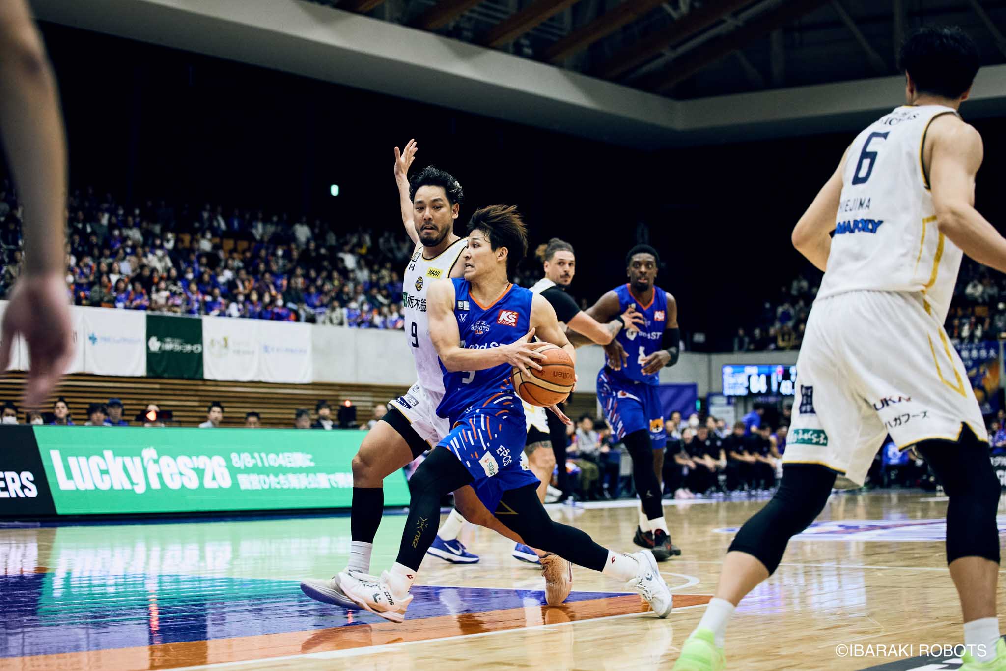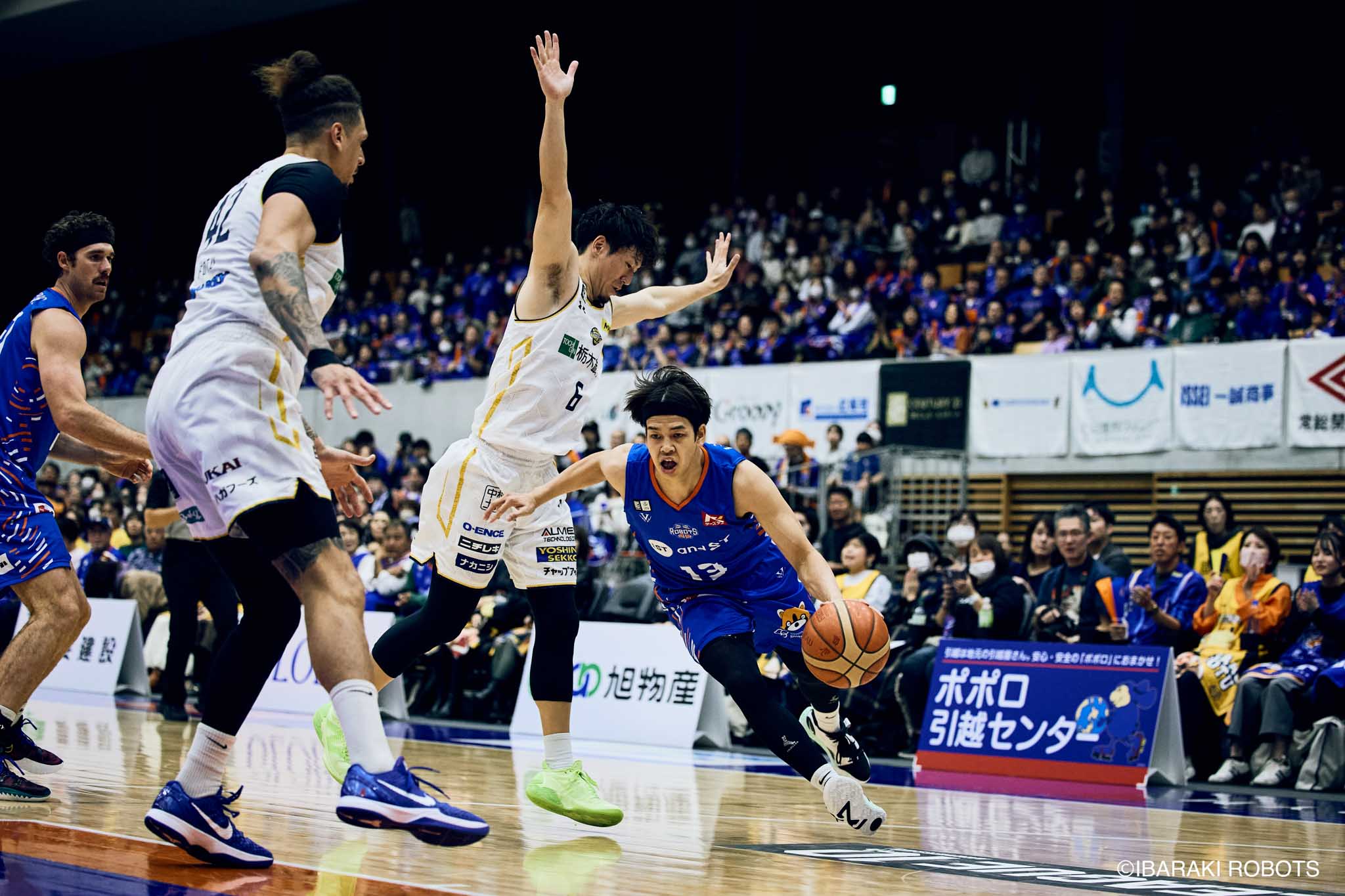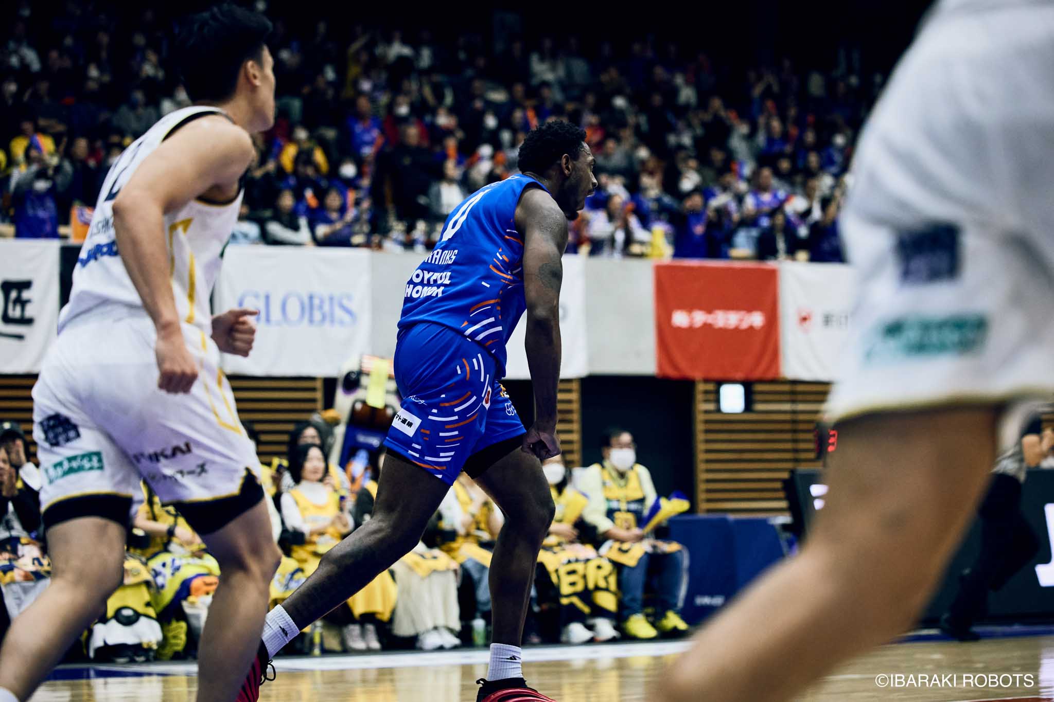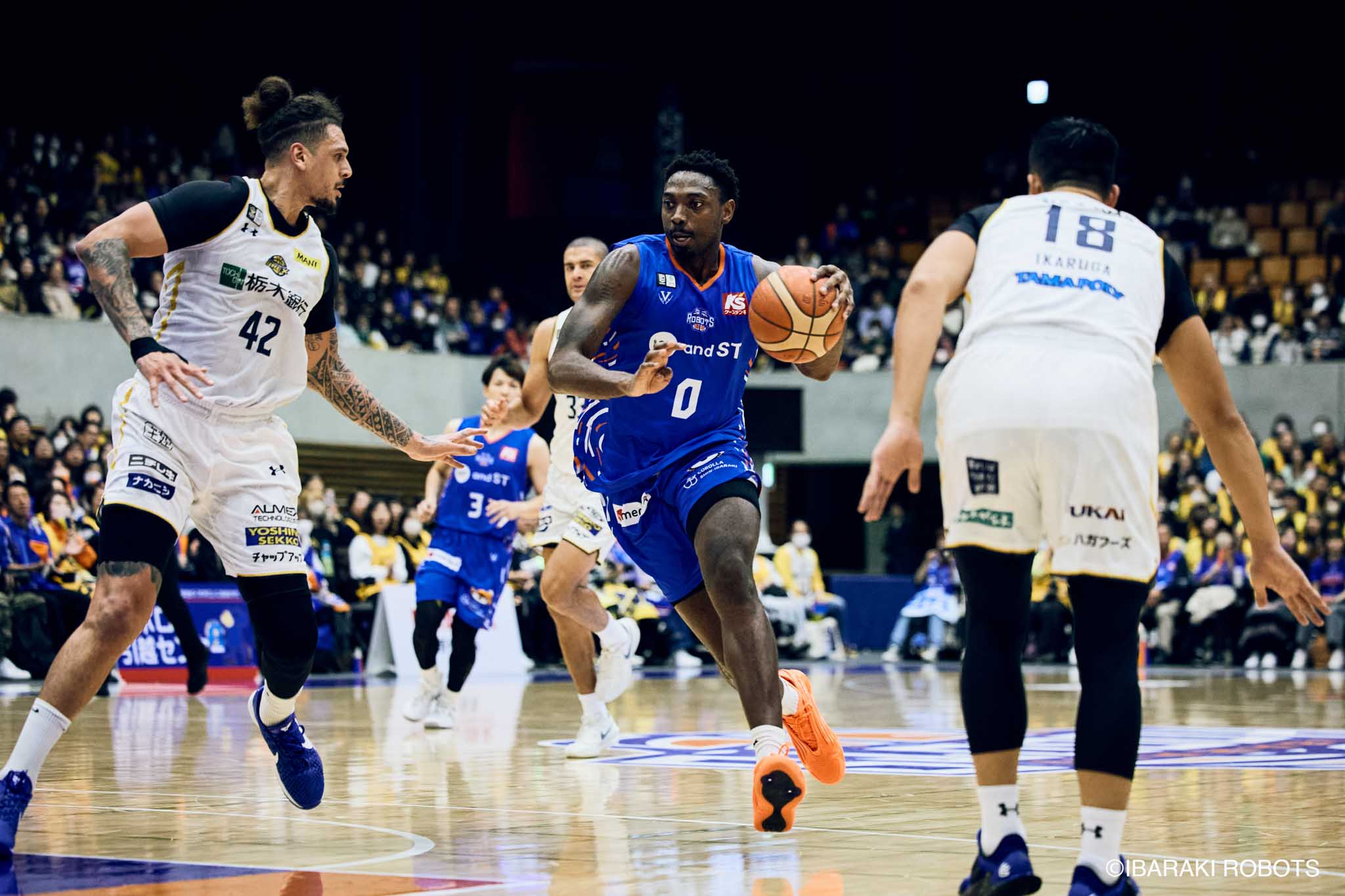 #8 クックがダンク、ファストブレイクで得点を重ねる。#3 長谷川はディフェンスで連続スティールを見せ、#0 フランクスのバスケットカウントに繋げる。#10 陳岡が攻守に渡りハッスルし、ロボッツペースに。終盤でも#8 クックが果敢にインサイドへ攻め込み、連続でバスケットカウントを決める。33-43で前半終了。