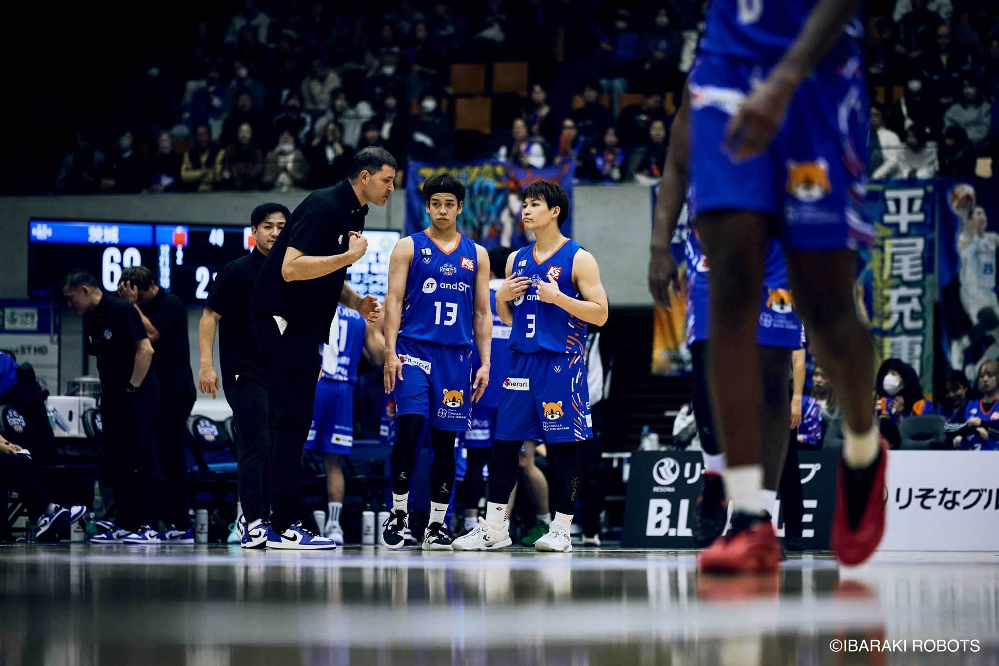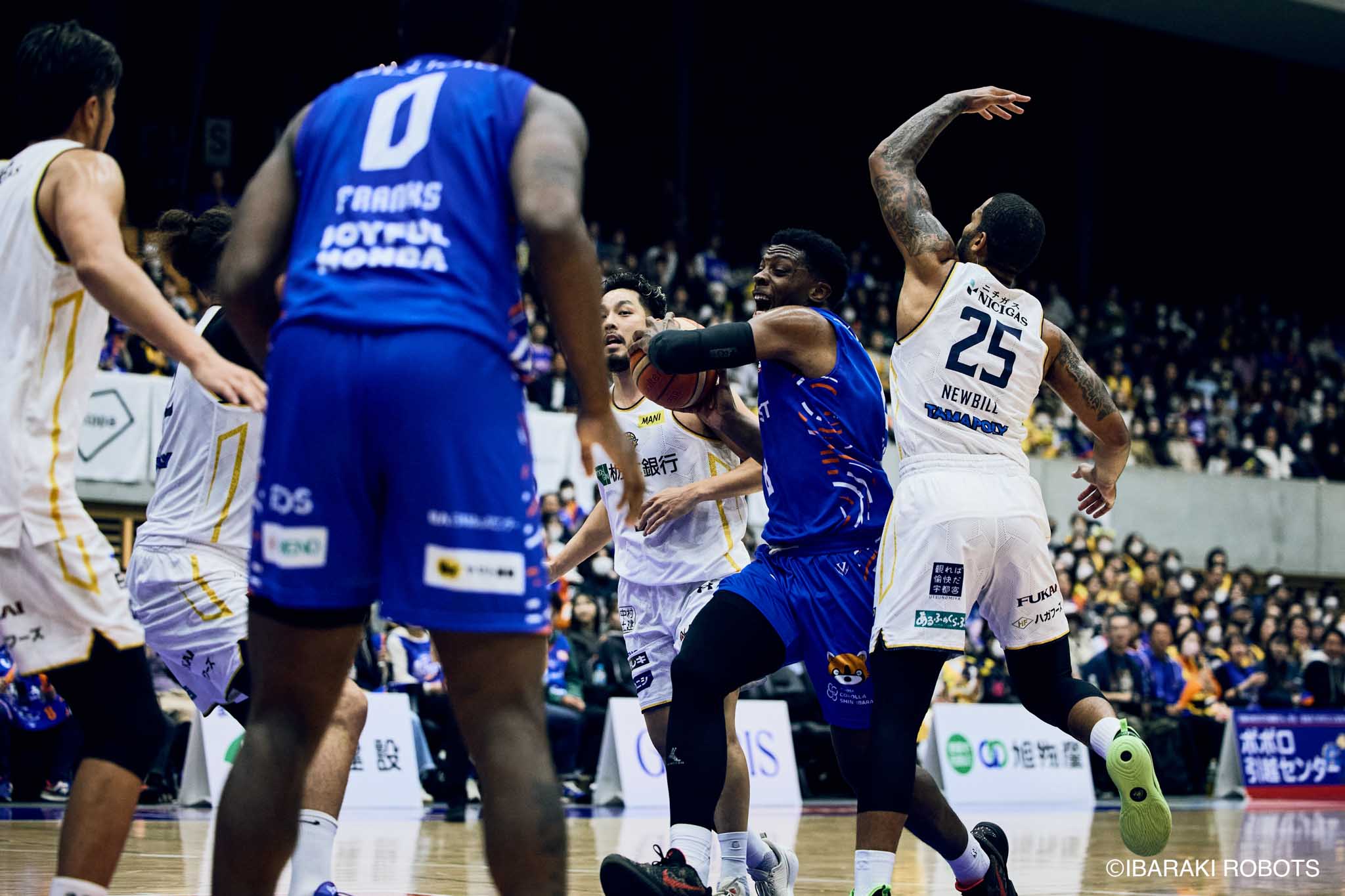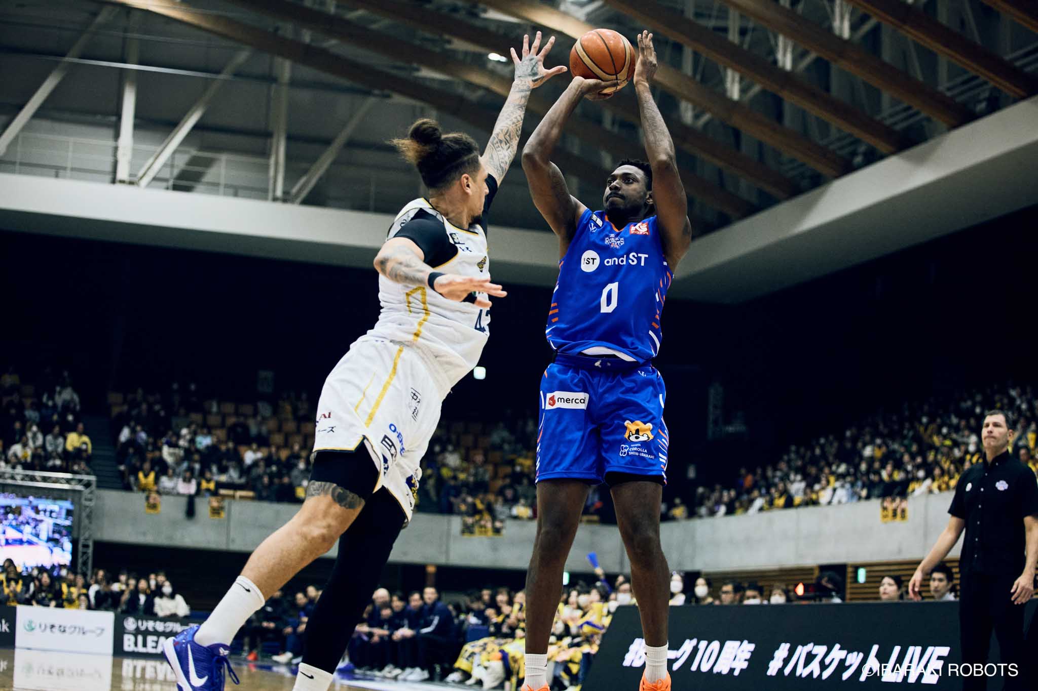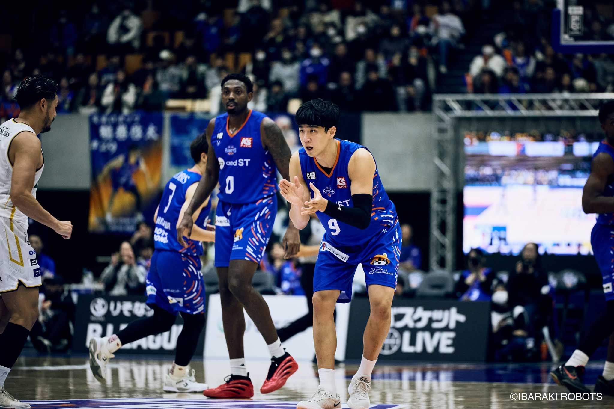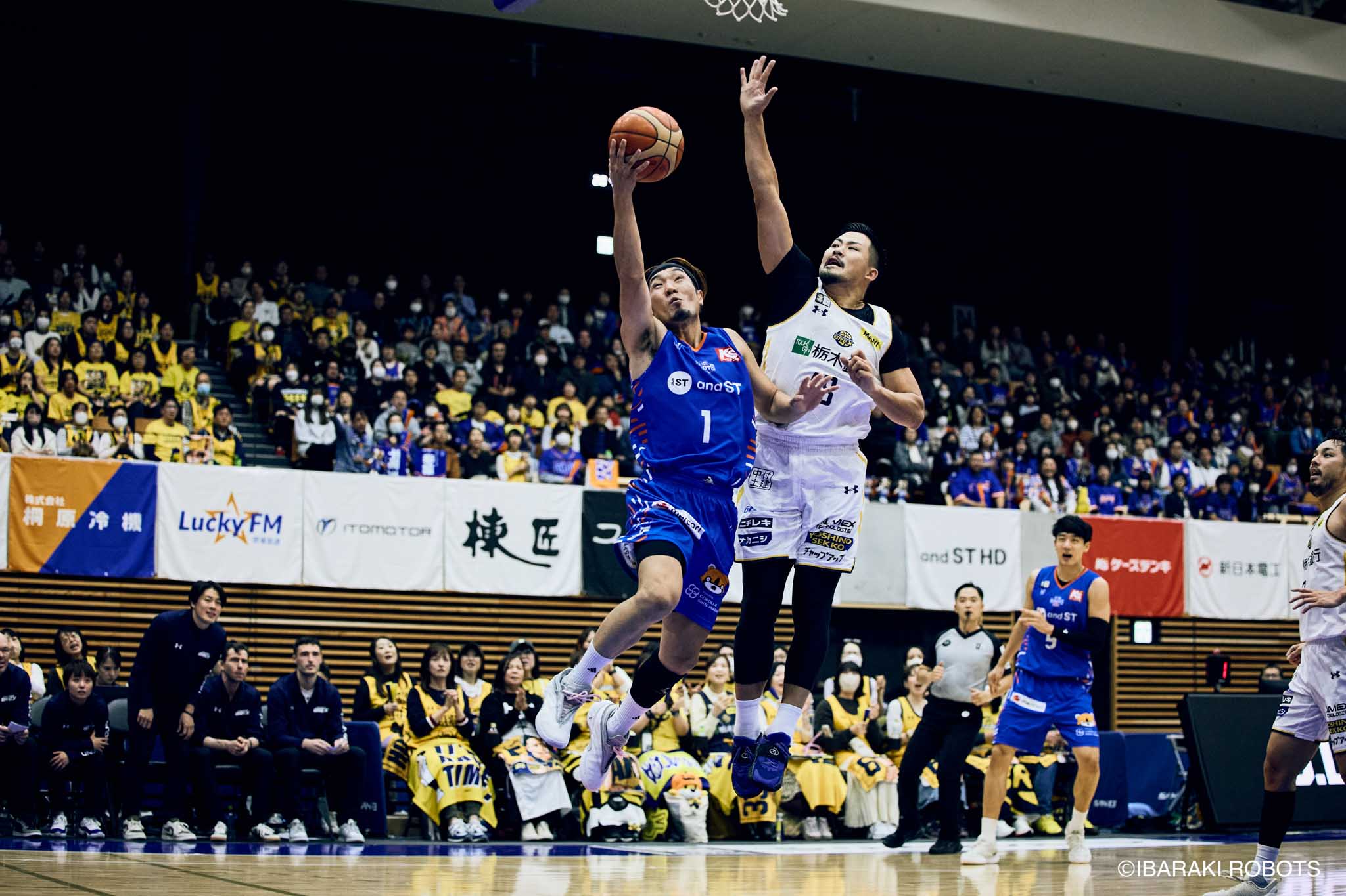#8 クックがダンク、ファストブレイクで得点を重ねる。#3 長谷川はディフェンスで連続スティールを見せ、#0 フランクスのバスケットカウントに繋げる。#10 陳岡が攻守に渡りハッスルし、ロボッツペースに。終盤でも#8 クックが果敢にインサイドへ攻め込み、連続でバスケットカウントを決める。33-43で前半終了。