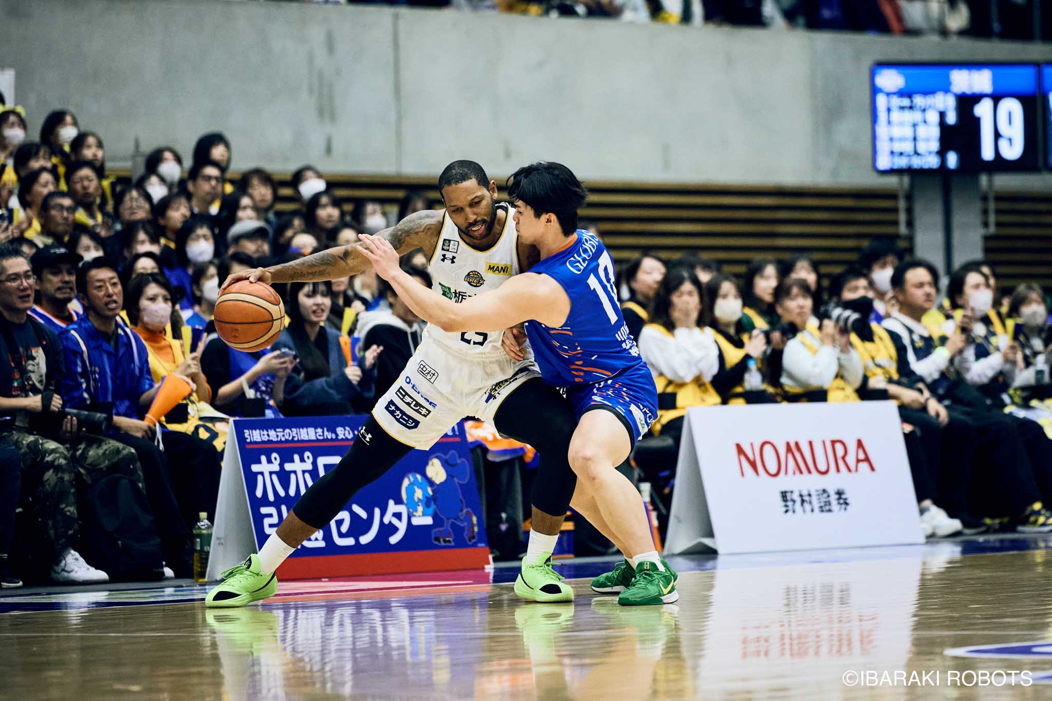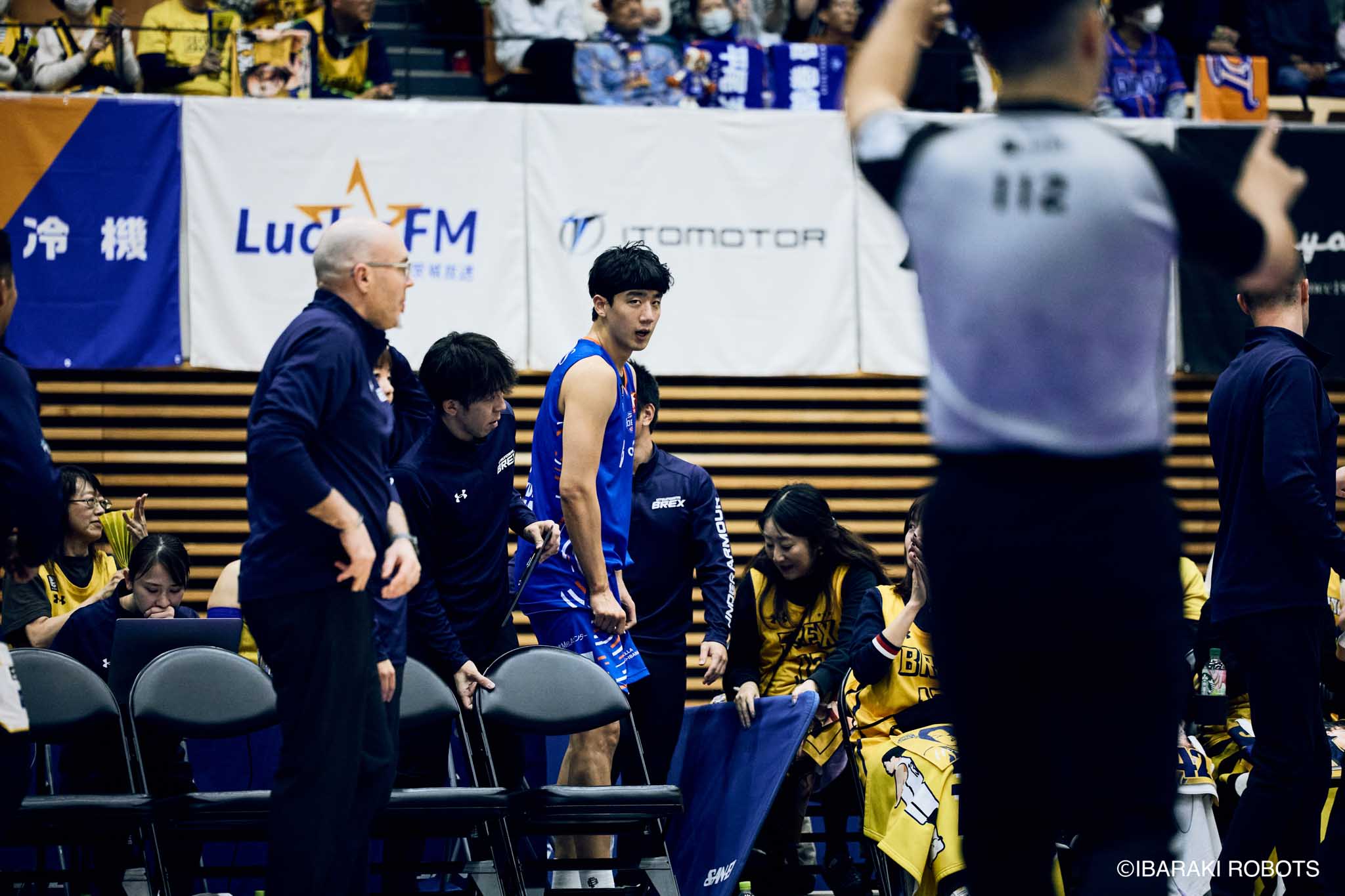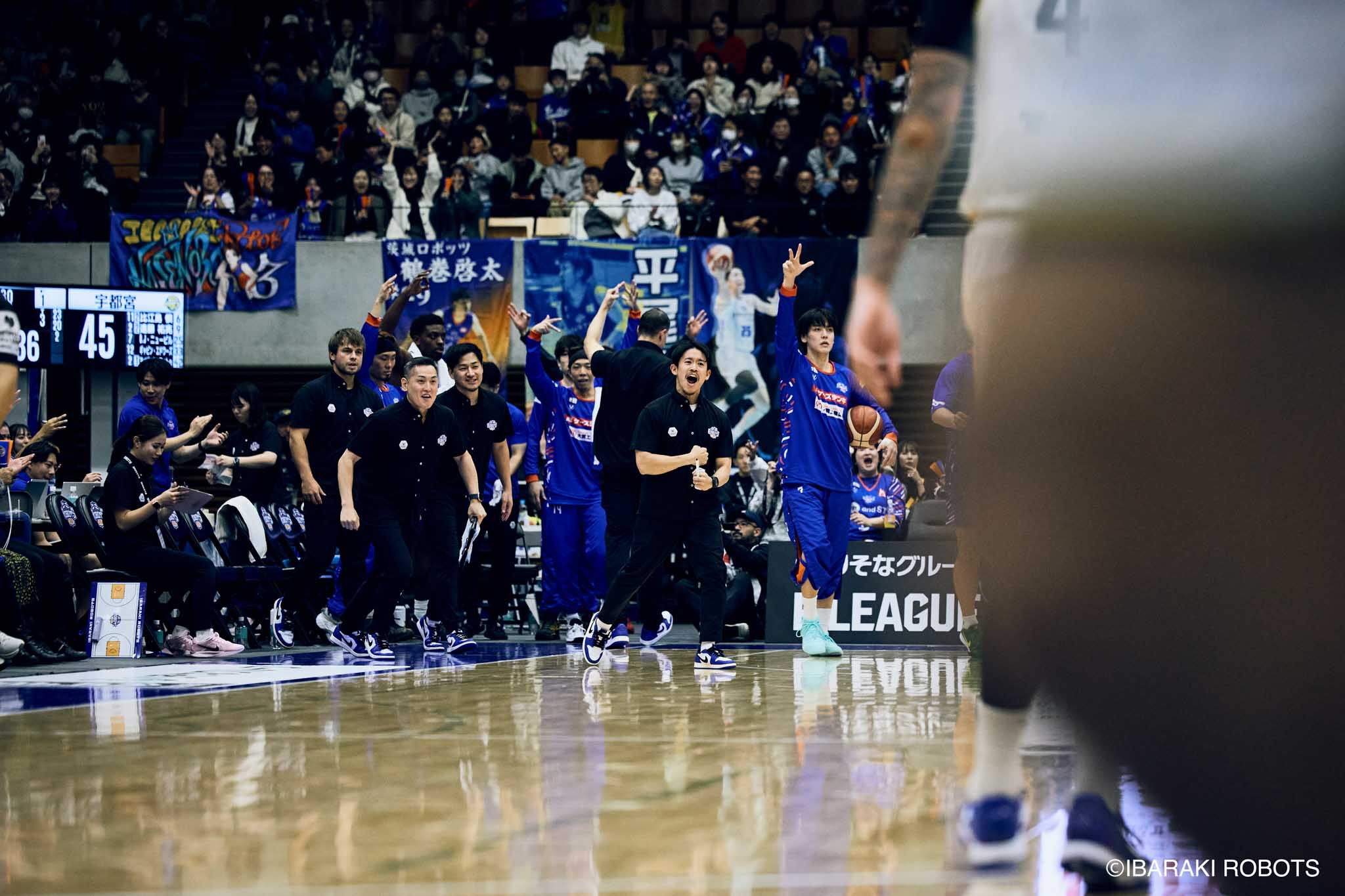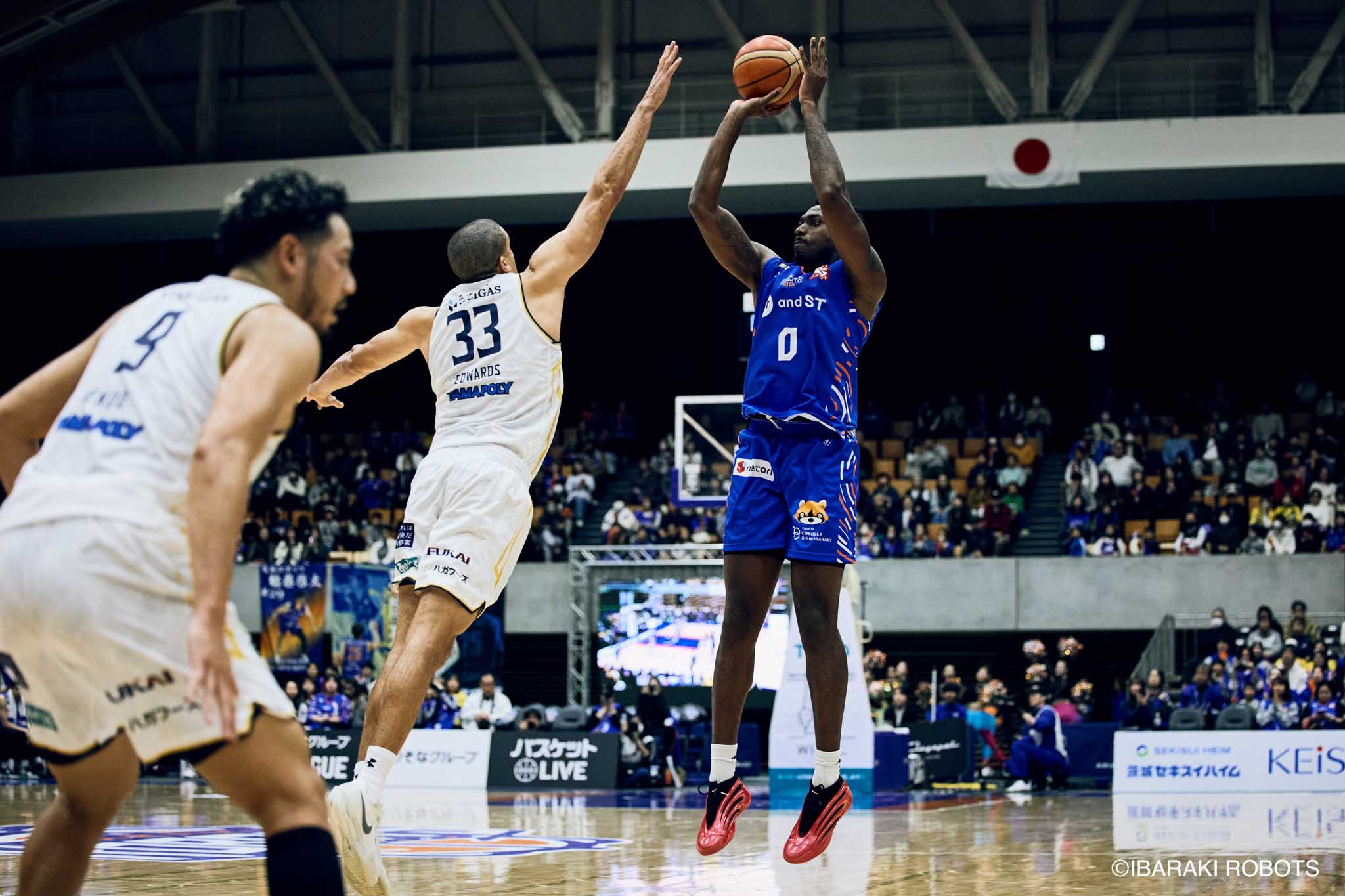#8 クックがダンク、ファストブレイクで得点を重ねる。#3 長谷川はディフェンスで連続スティールを見せ、#0 フランクスのバスケットカウントに繋げる。#10 陳岡が攻守に渡りハッスルし、ロボッツペースに。終盤でも#8 クックが果敢にインサイドへ攻め込み、連続でバスケットカウントを決める。33-43で前半終了。