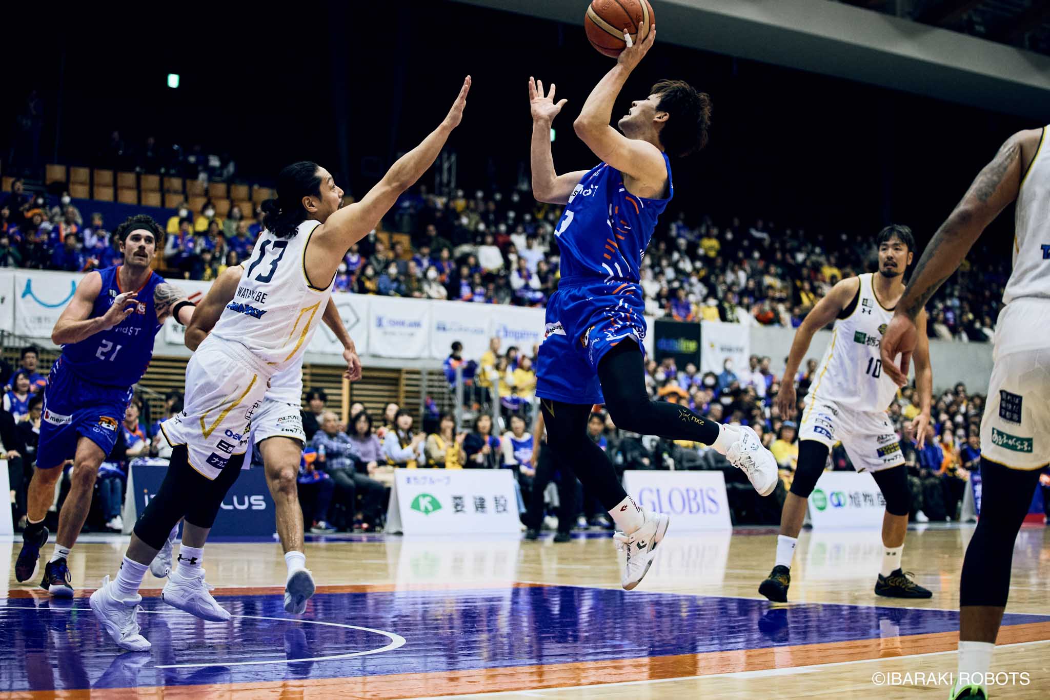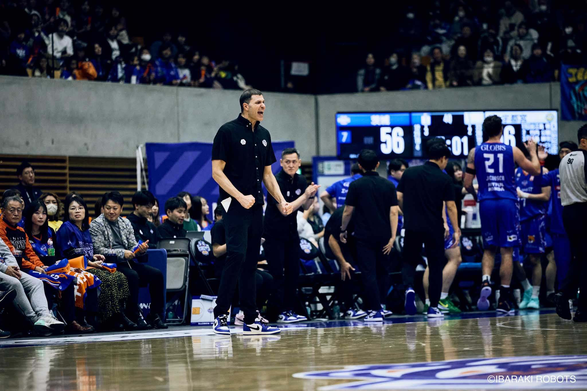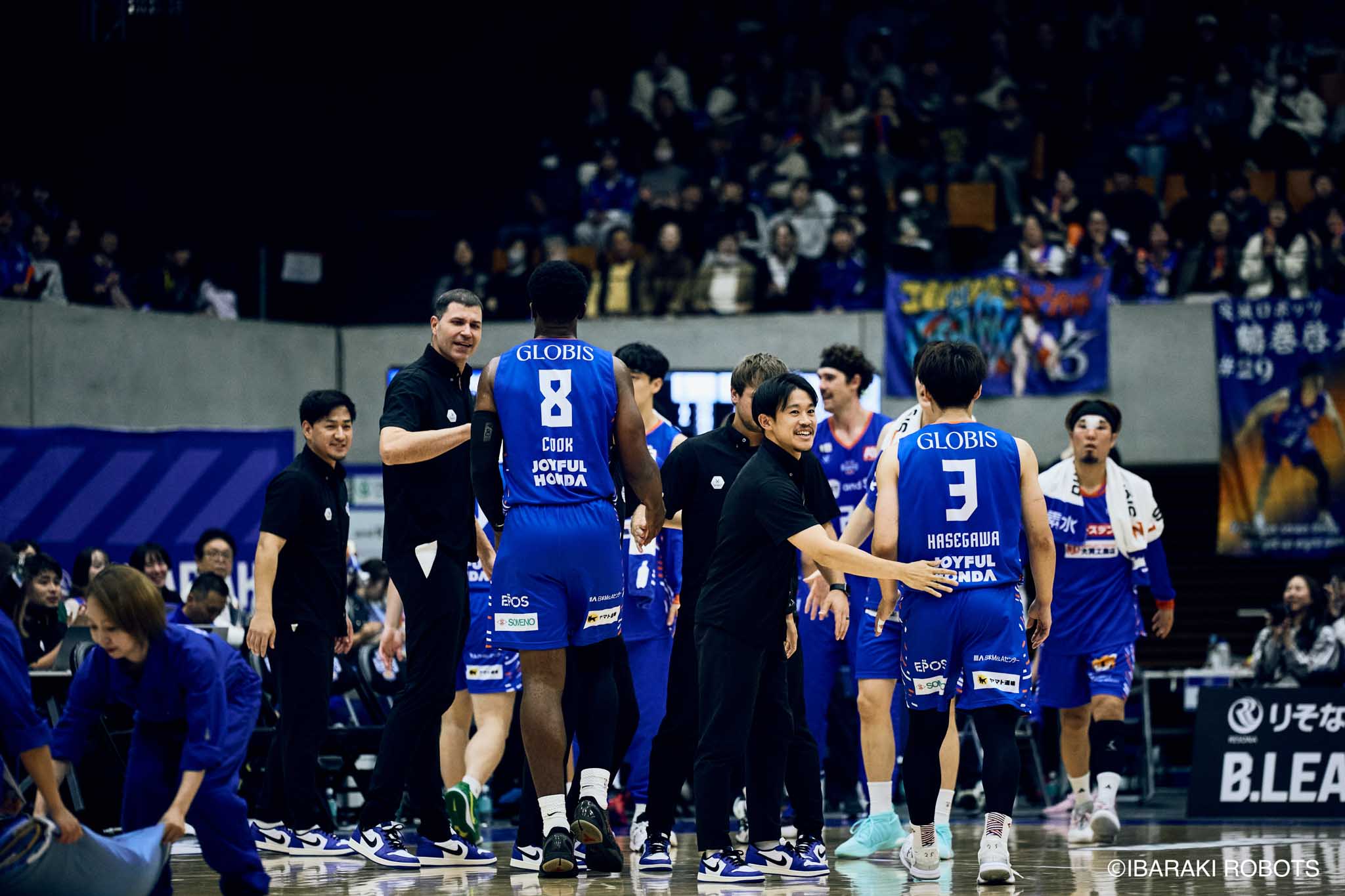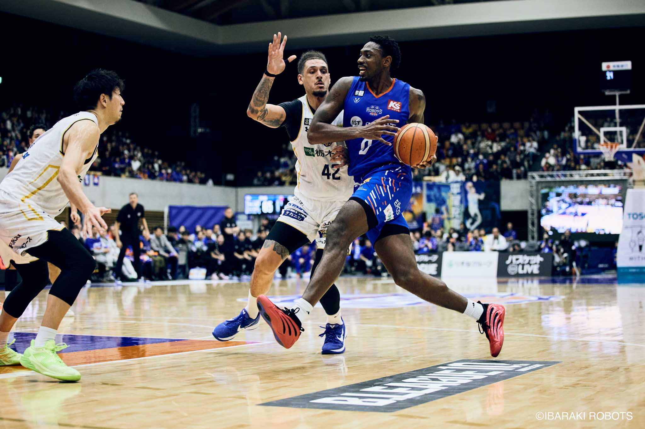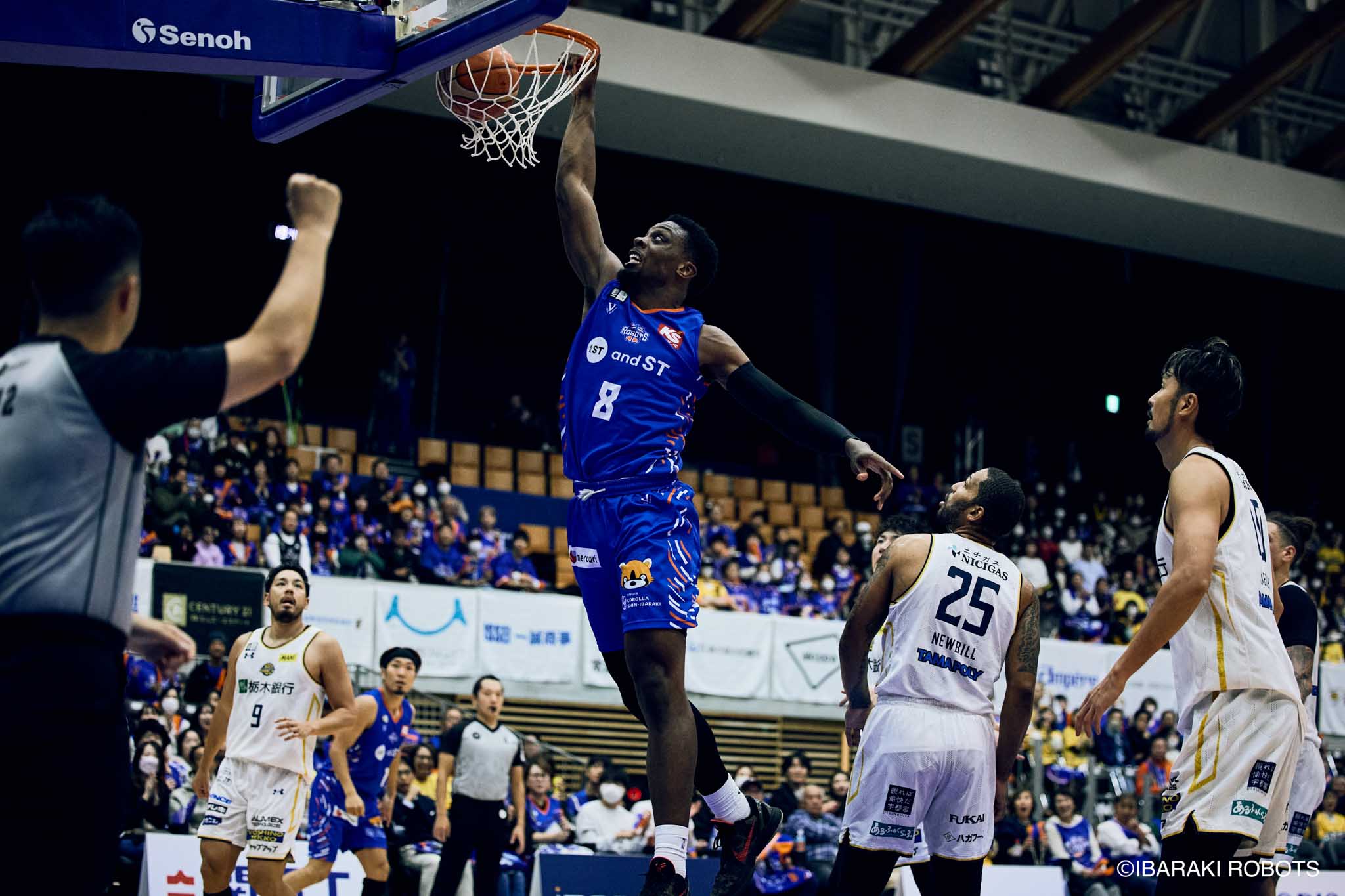 #8 クックがダンク、ファストブレイクで得点を重ねる。#3 長谷川はディフェンスで連続スティールを見せ、#0 フランクスのバスケットカウントに繋げる。#10 陳岡が攻守に渡りハッスルし、ロボッツペースに。終盤でも#8 クックが果敢にインサイドへ攻め込み、連続でバスケットカウントを決める。33-43で前半終了。